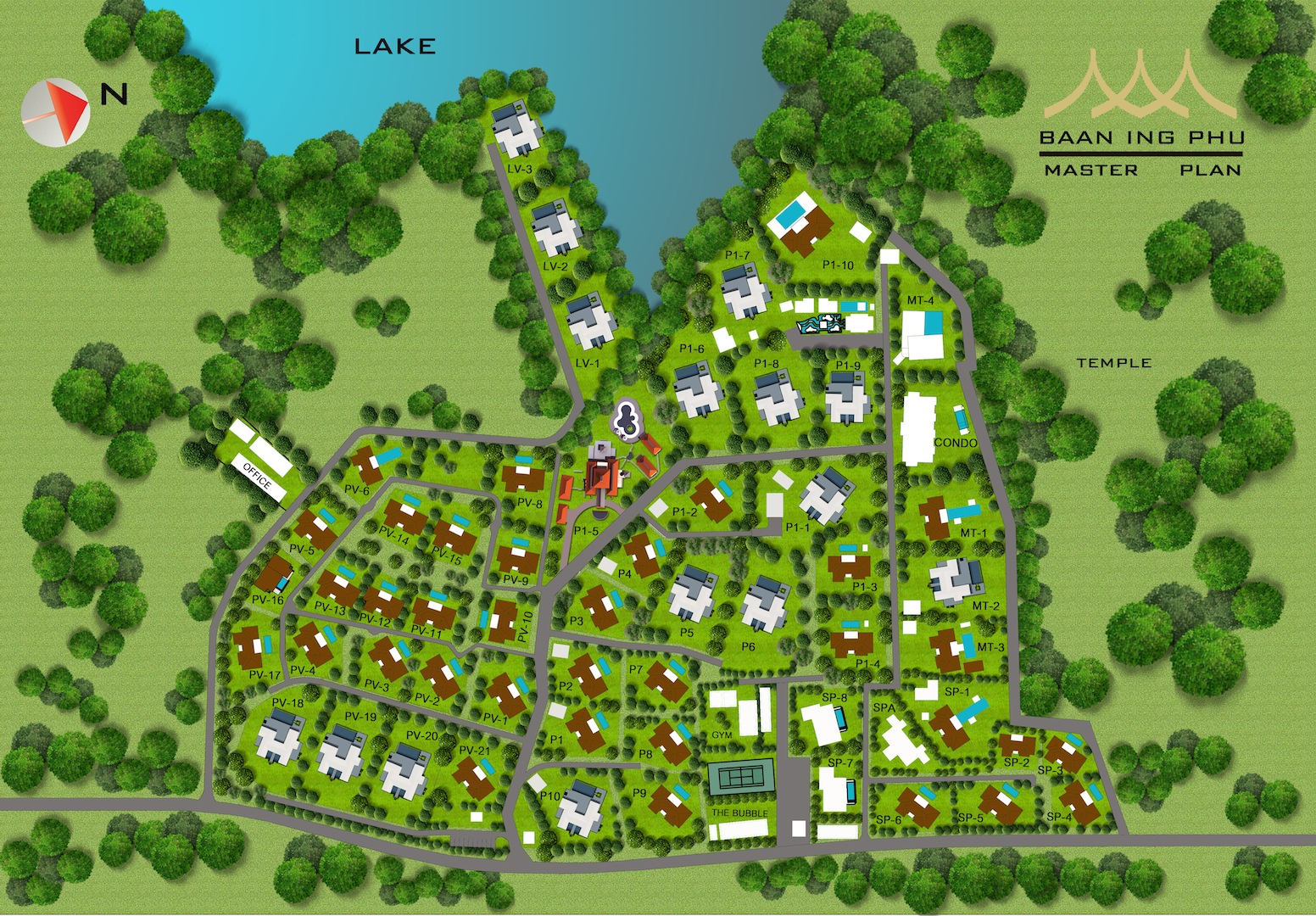 The Park Villas are the most popular type of villa at Baan Ing Phu. Our Park Villas are created in a lush resort style with spacious common garden areas. The plot size for Park Villas varies between 650 and 1,500 Sqm.