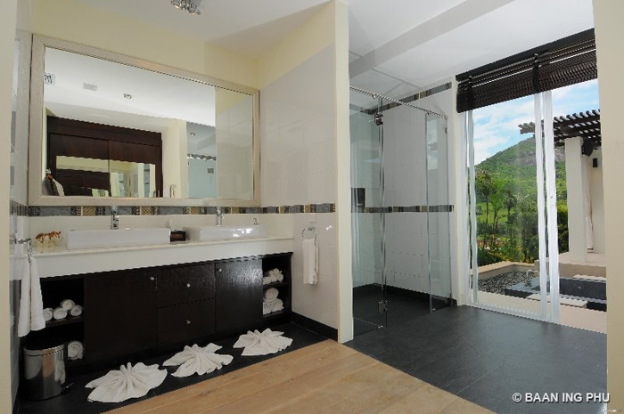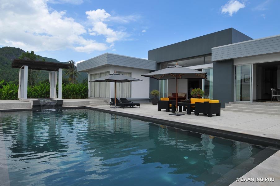 This ultimate private contemporary Villa is located within one of Hua Hin's most desirable communities, Baan Ing Phu, a luxury real estate that is acclaimed for its stylish lifestyle and quiet sophistication. The resort boasts five star property management, a restaurant, spa, tennis court and fitness gym. The villa is located in a quiet cul-de-sac within the resort and has its own impressive palm tree lined drive way. The property boasts a 16 meter long lap pool with extended views over the mountains. There are 3 bedrooms, 3 bathrooms and an independent guesthouse.