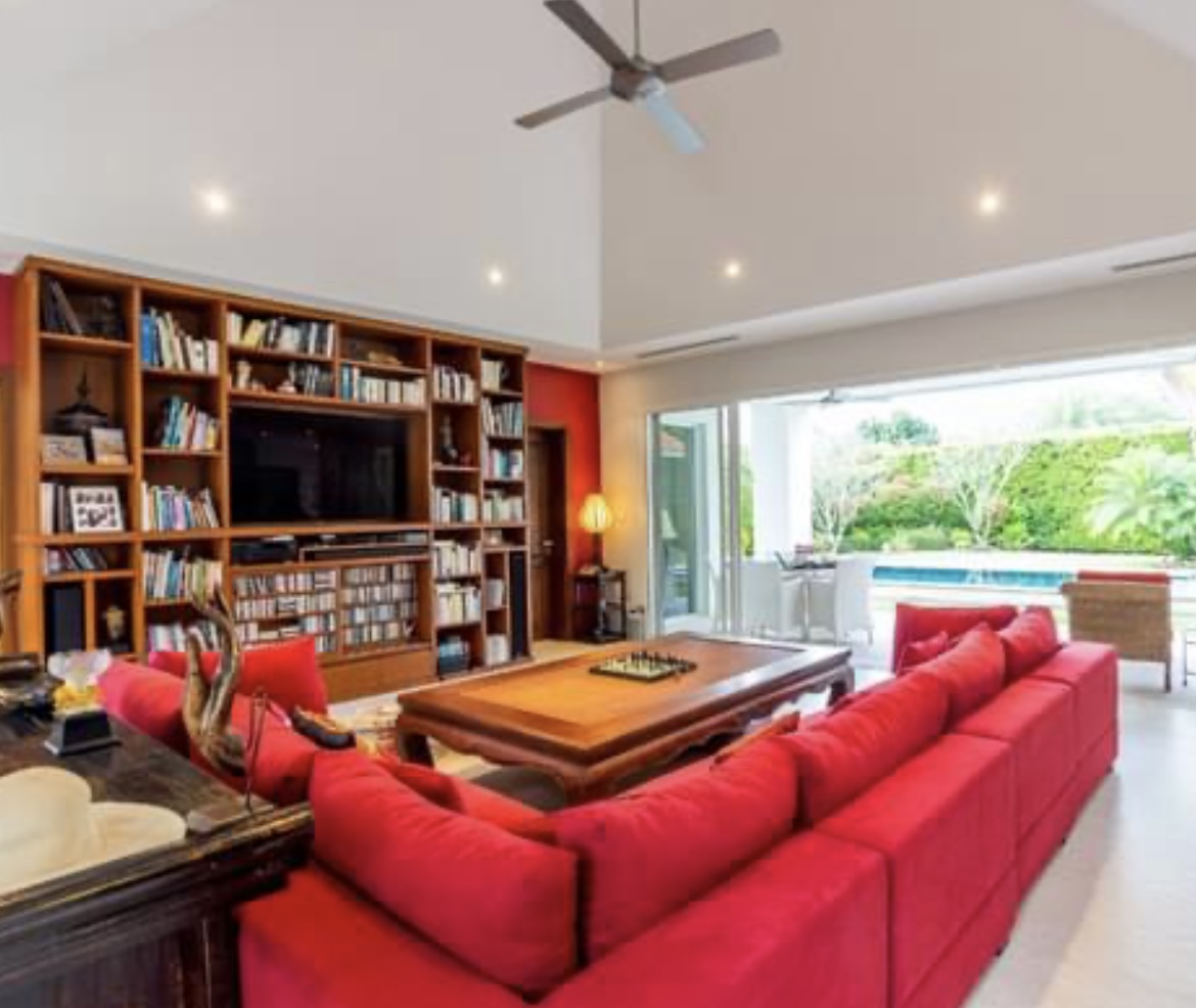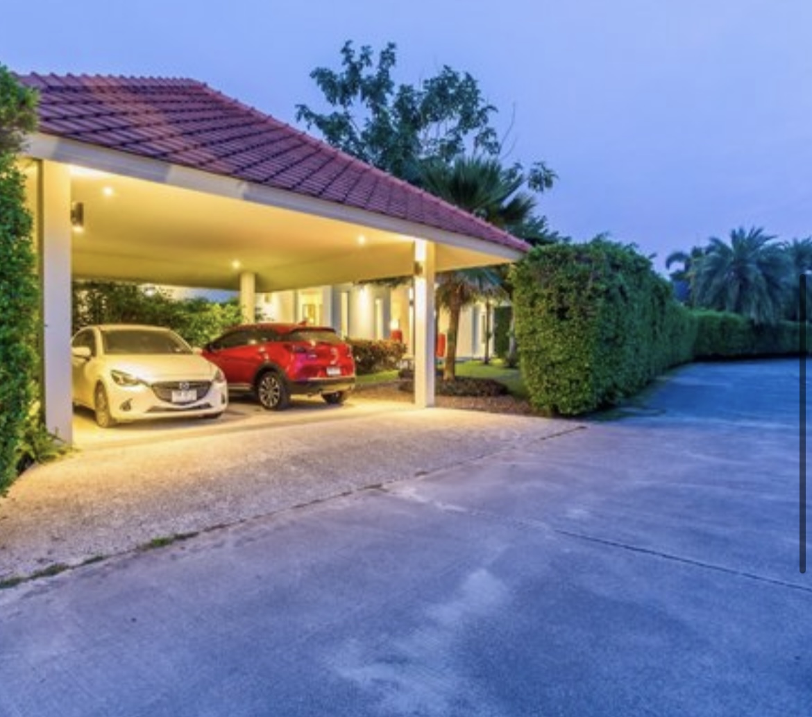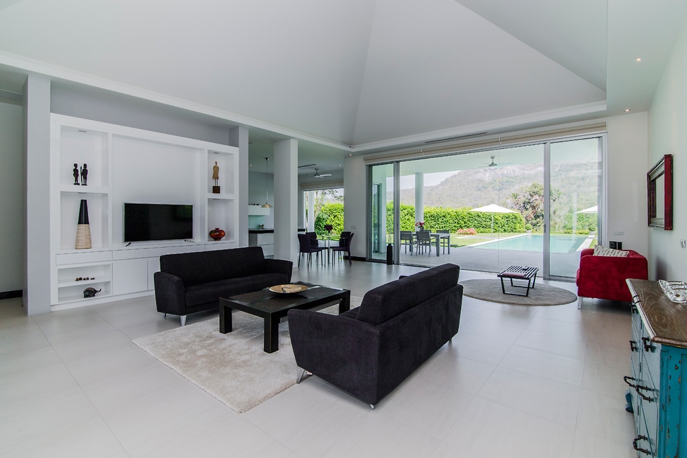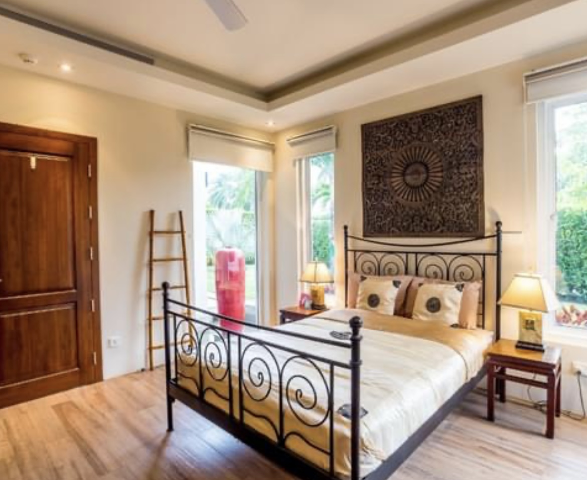 This magnificent pool villa in a prestigious development, a stone's throw from Black Mountain Golf Club,breathes quality, class.,elegance, and a sophisticated lifestyle. The 3 bedrooms,3 bathrooms,house has a living area of 368 sqm and stands on a 1,260 sqm plot. The property is surrounded by high hedges that provide total privacy and tranquility. The villa has full chanote in Thai name.