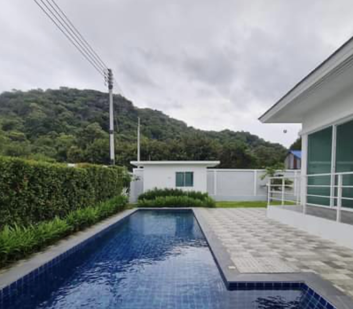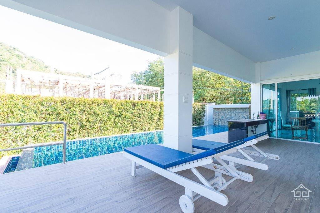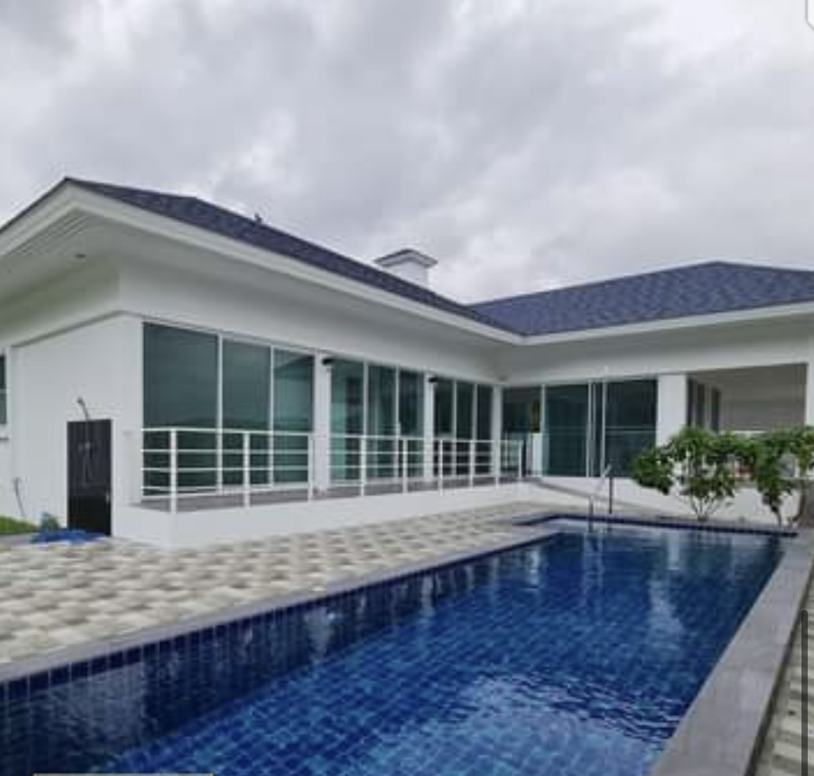 L shape Pool Villa with 3 bedrooms and 2 bathrooms and large covered terrace beside the 8 x 4 pool