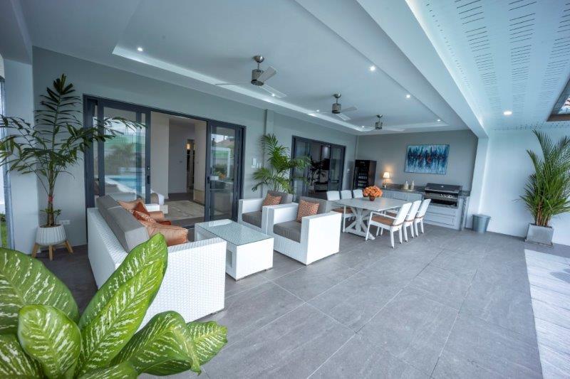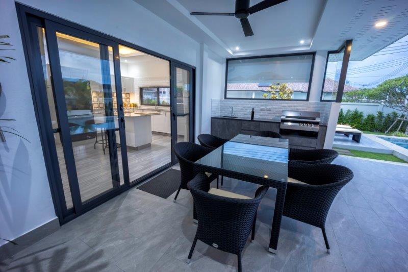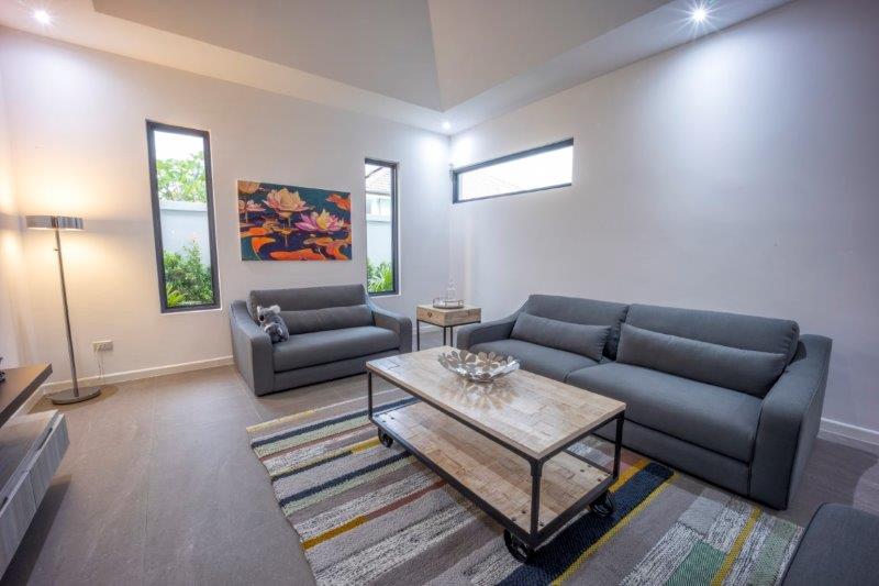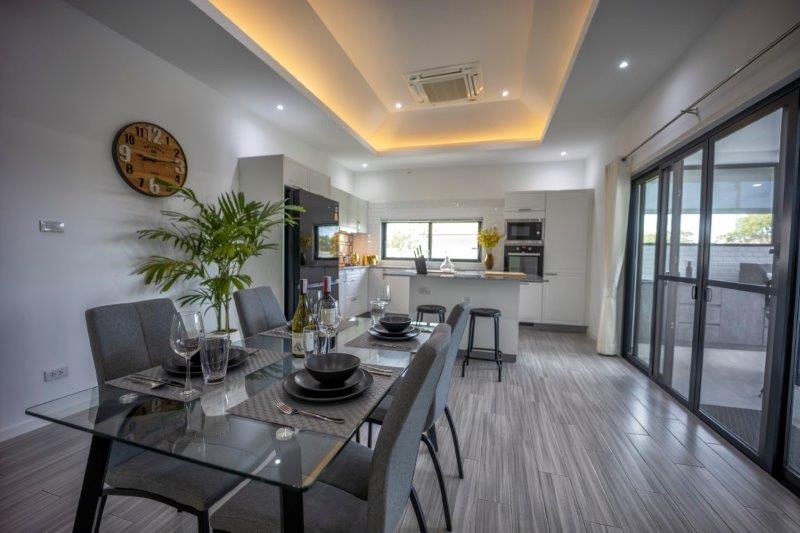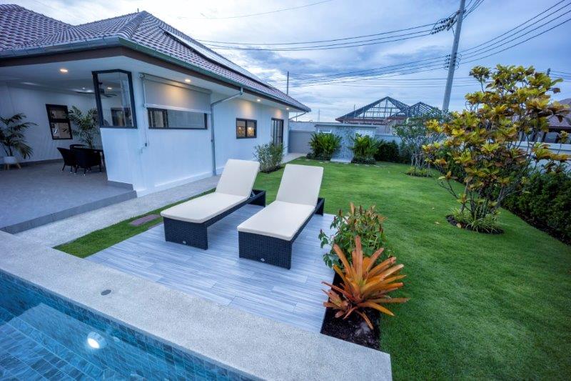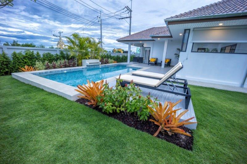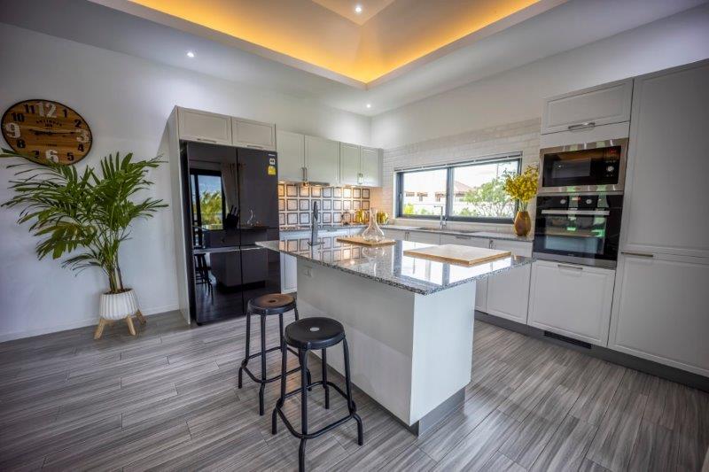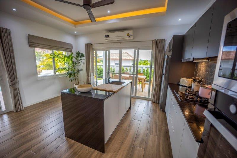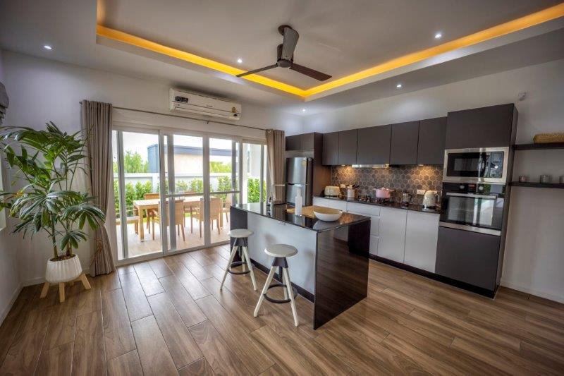 Complete with furniture from Beautiful World, Hua Hin, a reputable local supplier, a stylish Danish design kitchen from Kvik and a landscaped garden.