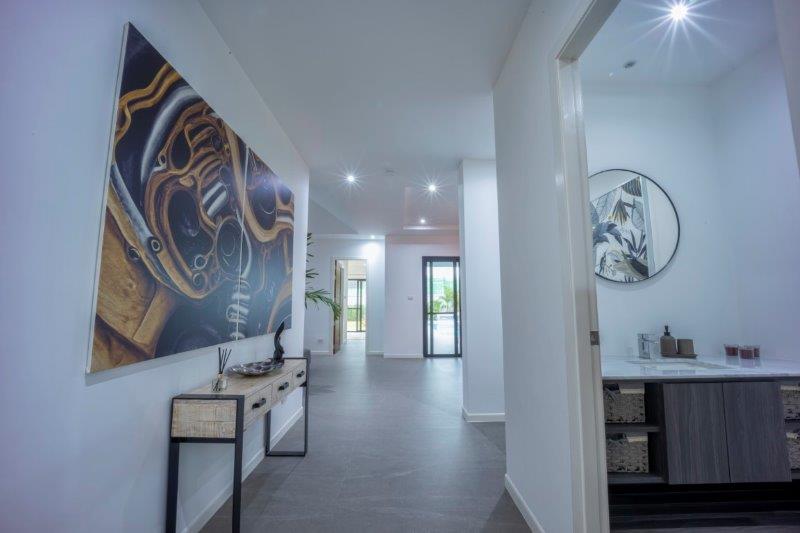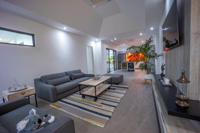 Offers a livig area of 192 sqm, has 3 bedrooms and 2 bathrooms and comes with an island design kitchen as standard, a single vaulted ceiling in the main living space with ceiling mounted air conditioning, and a feature TV wall area.
