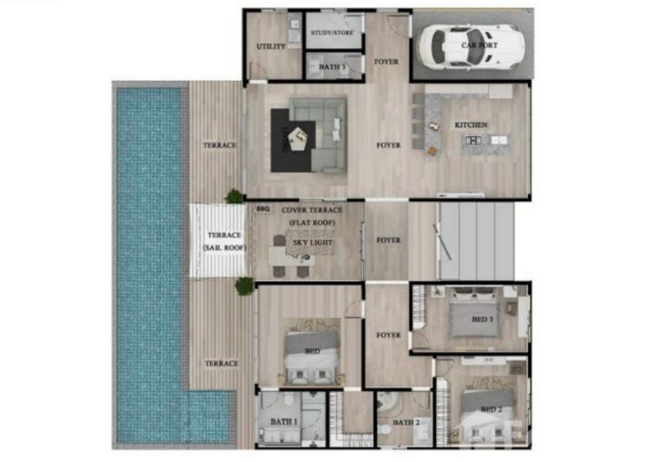 3 Bed / 3 Bath Land from 649 sqm Living 228 sqm 9.79M THB