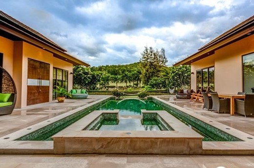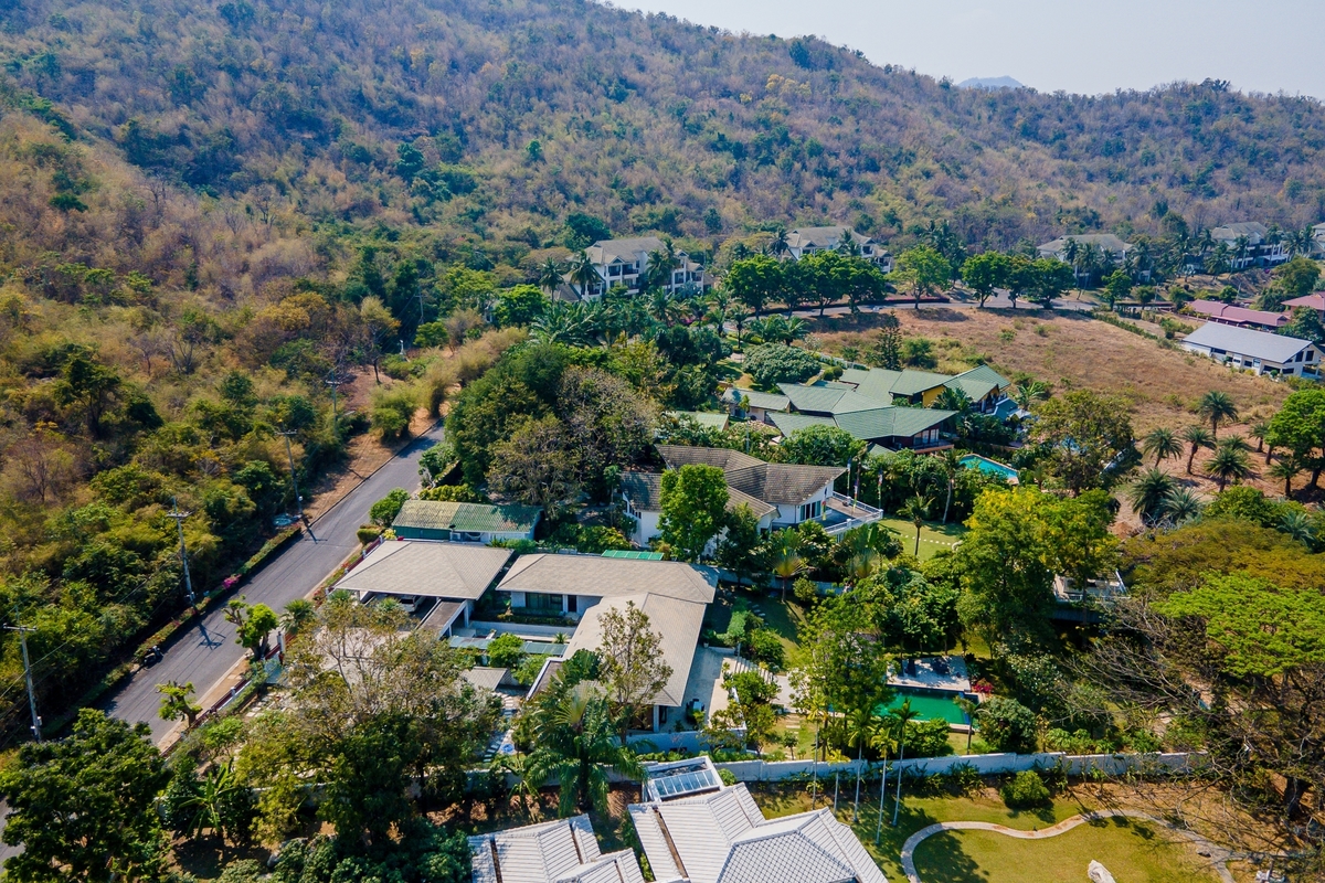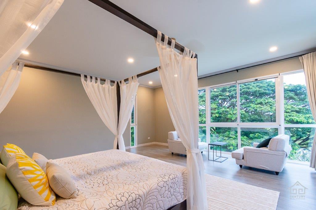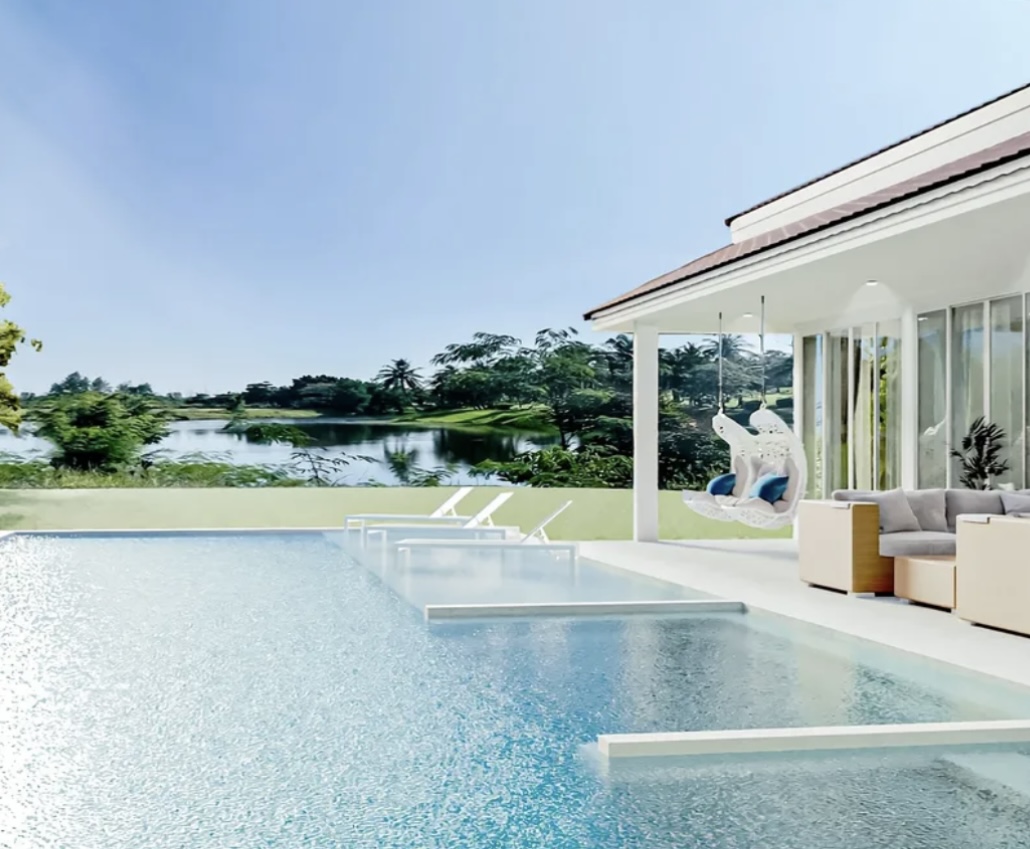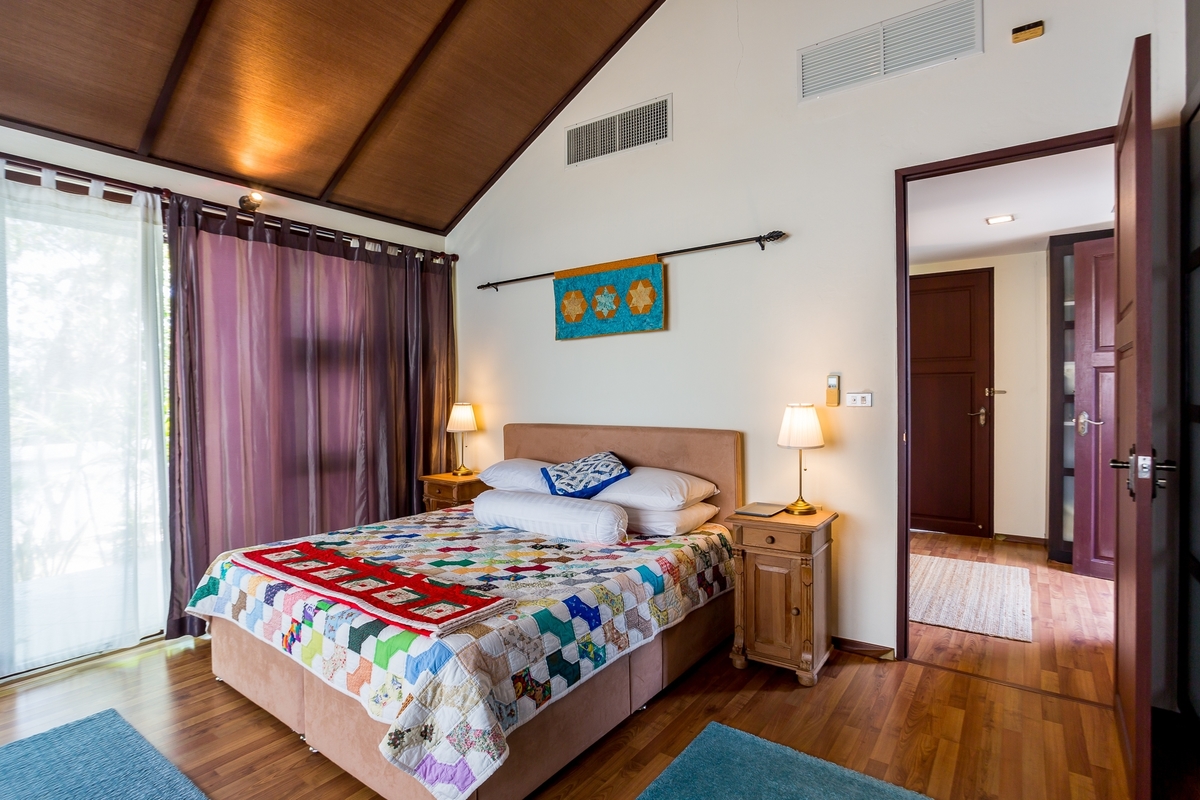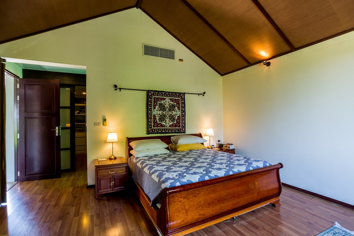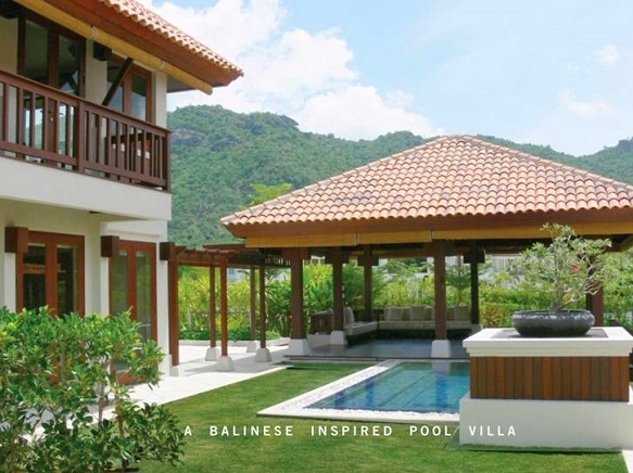 Hua Hin Inspired Villa, A truly unique architectural masterpiece that beautifully blends nature with imagination, great care in designing and planning to ensure that every single house is unobstructed from the sea and hillside vistas while still enjoying maximum privacy. Break out of your old bed and bath habits with our spacious, airy design. The clear, large bathroom windows bring nature inside, while the cozy reading nook in the master bedroom turn it into a serene afternoon hideaway. Or just spend the day in the canopy bed, centered under the vaulted ceiling for ideal soothing air flow.