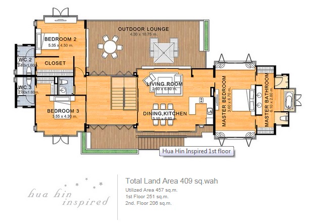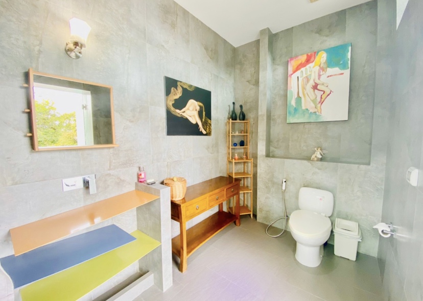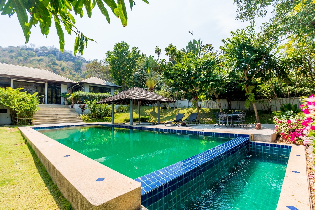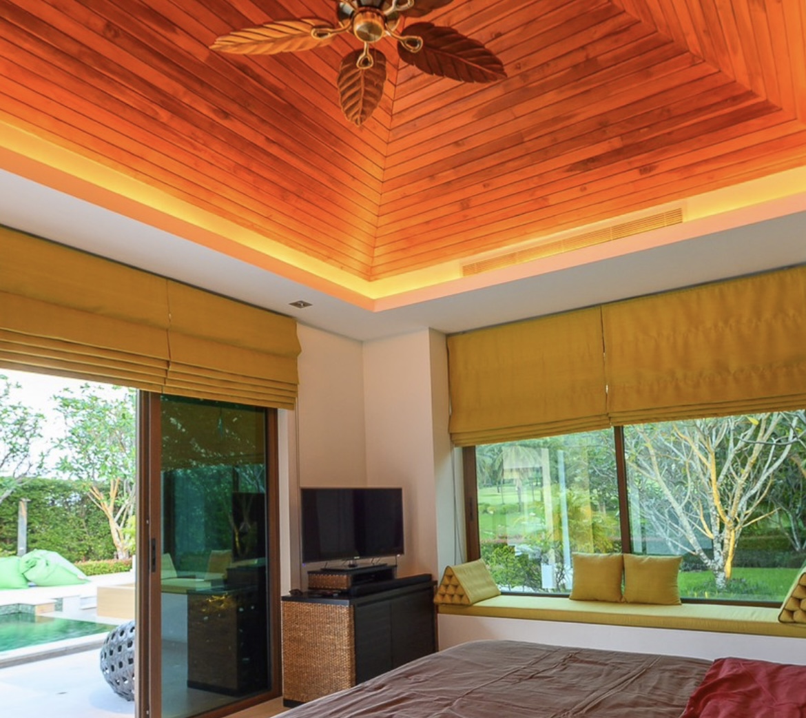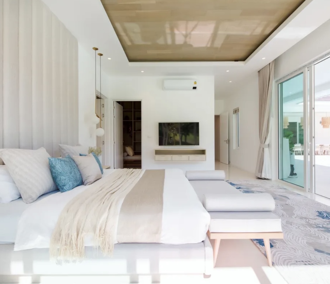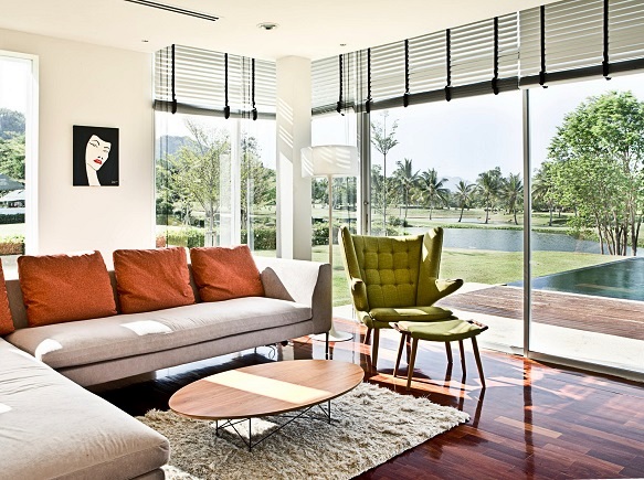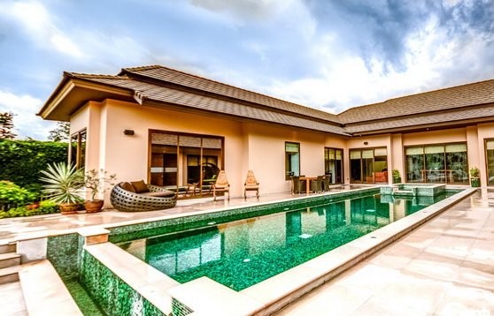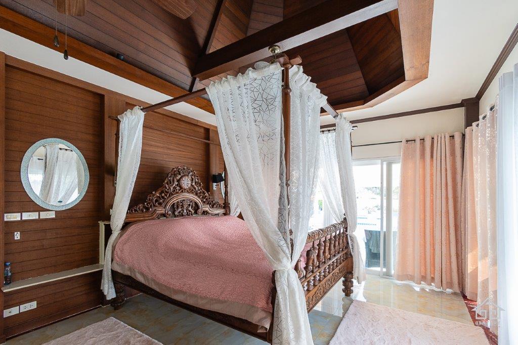 Hua Hin Inspired Villa, A truly unique architectural masterpiece that beautifully blends nature with imagination, great care in designing and planning to ensure that every single house is unobstructed from the sea and hillside vistas while still enjoying maximum privacy. Break out of your old bed and bath habits with our spacious, airy design. The clear, large bathroom windows bring nature inside, while the cozy reading nook in the master bedroom turn it into a serene afternoon hideaway. Or just spend the day in the canopy bed, centered under the vaulted ceiling for ideal soothing air flow.