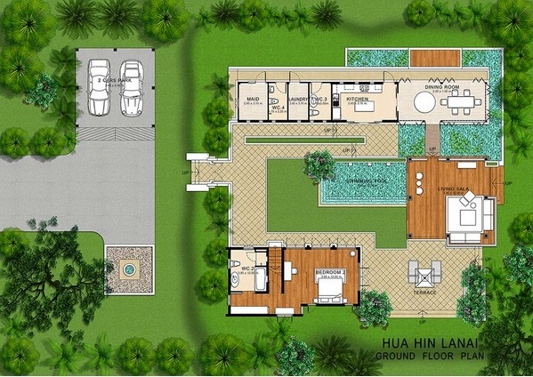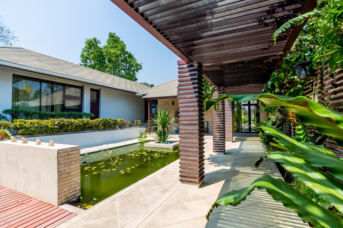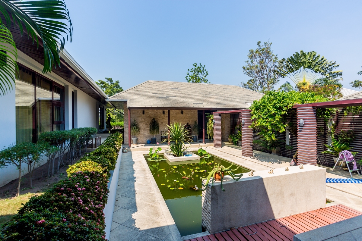 The Hua Hin Lanai is a luxury Bali-style villa which draws its inspiration from tropical island environments. Maximizing the assets of warmth, light, and the abundance of natural plant life, the Lanai makes daily life feel more like a permanent holiday in the sun. By placing each room and living area around a lotus pond and a swimming pool, the Lanai’s layout assures that you’re always close to the sight and sound of water, while its glass walls let in warm light and cool breeze. There are only five exclusive villas in the property. One last villa available.