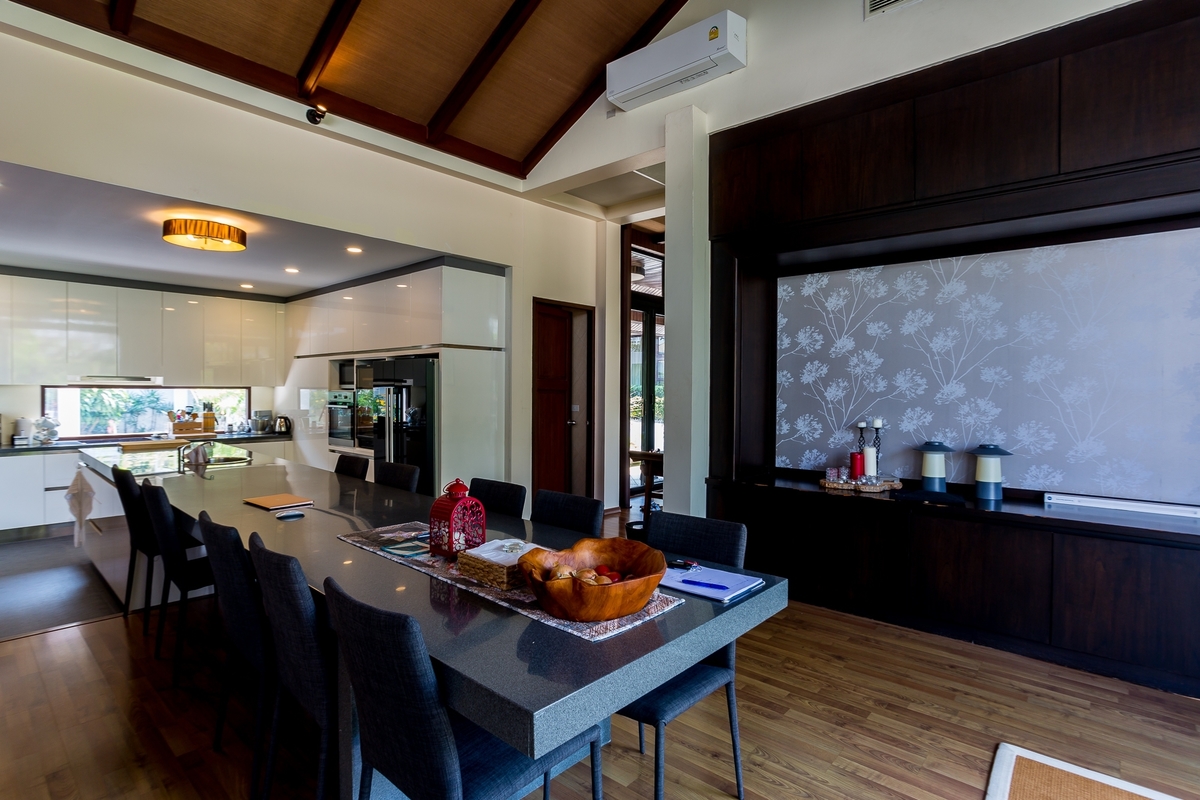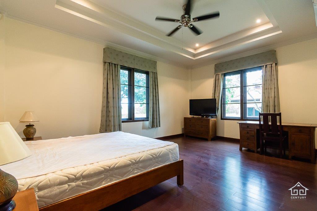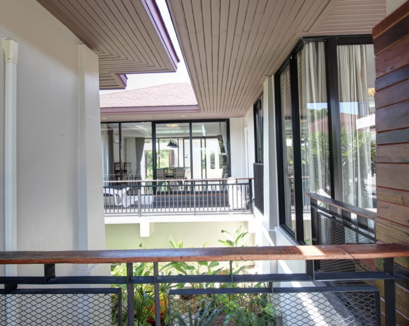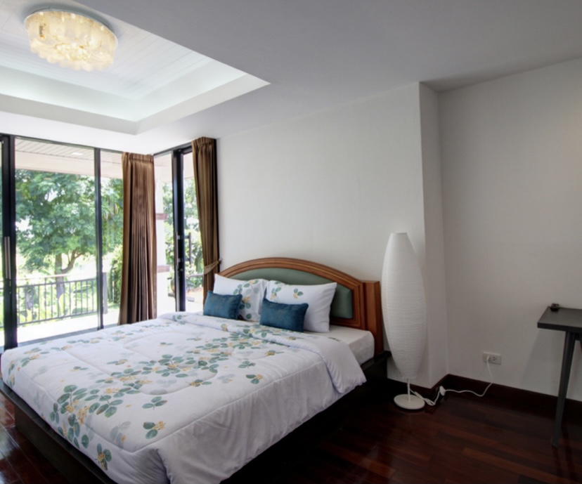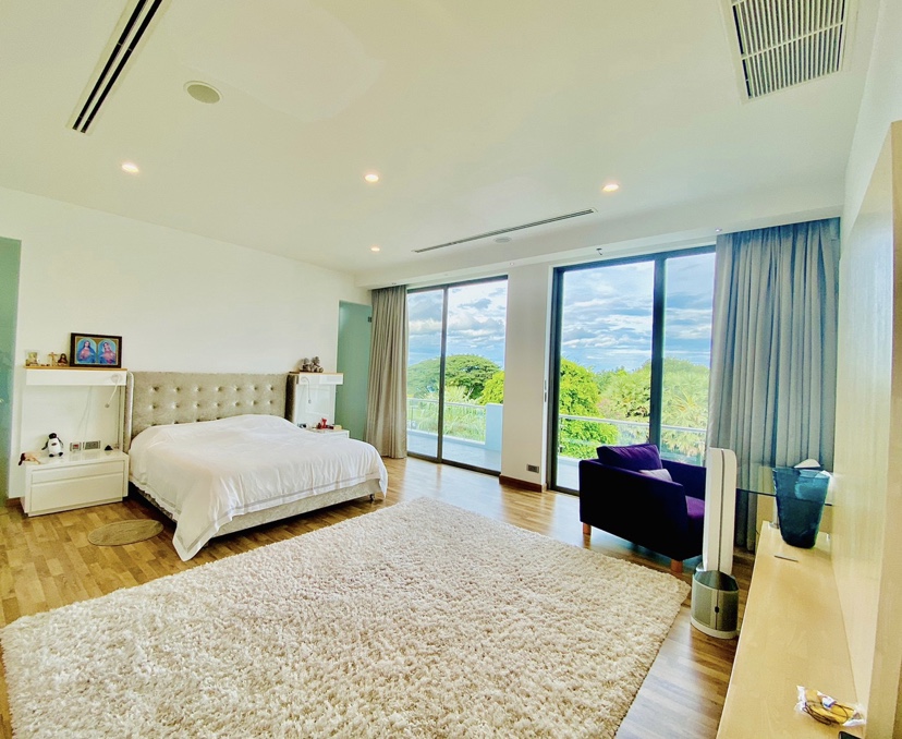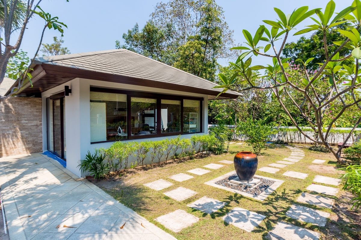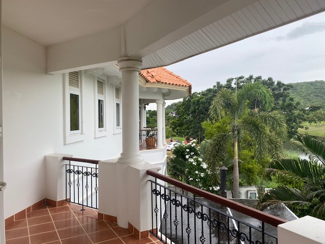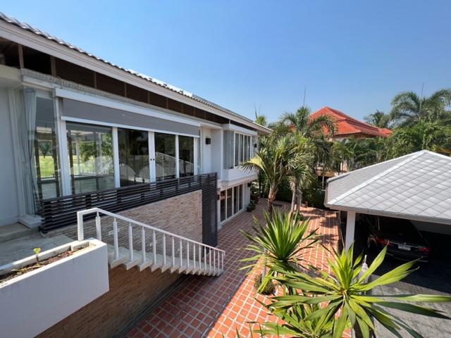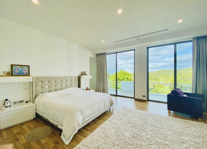 This villa consists of 3 bedrooms in the main house, a seperate 2 bed guesthouse with en-suite bathrooms and a second guest house that has a full kitchen, living room, bedroom and bathroom. There is a garden Sala for chilling where you can see golf hole 7 which is a par 5 and nice square shaped swimming pool. The main house consist of living room , kitchen and office room at the ground floor and the second floor have 3 bedrooms and 3 bathrooms with nice decoration throughout.