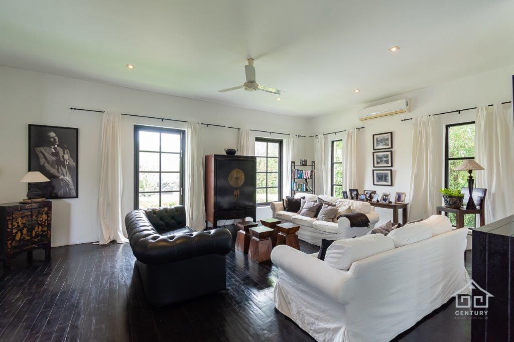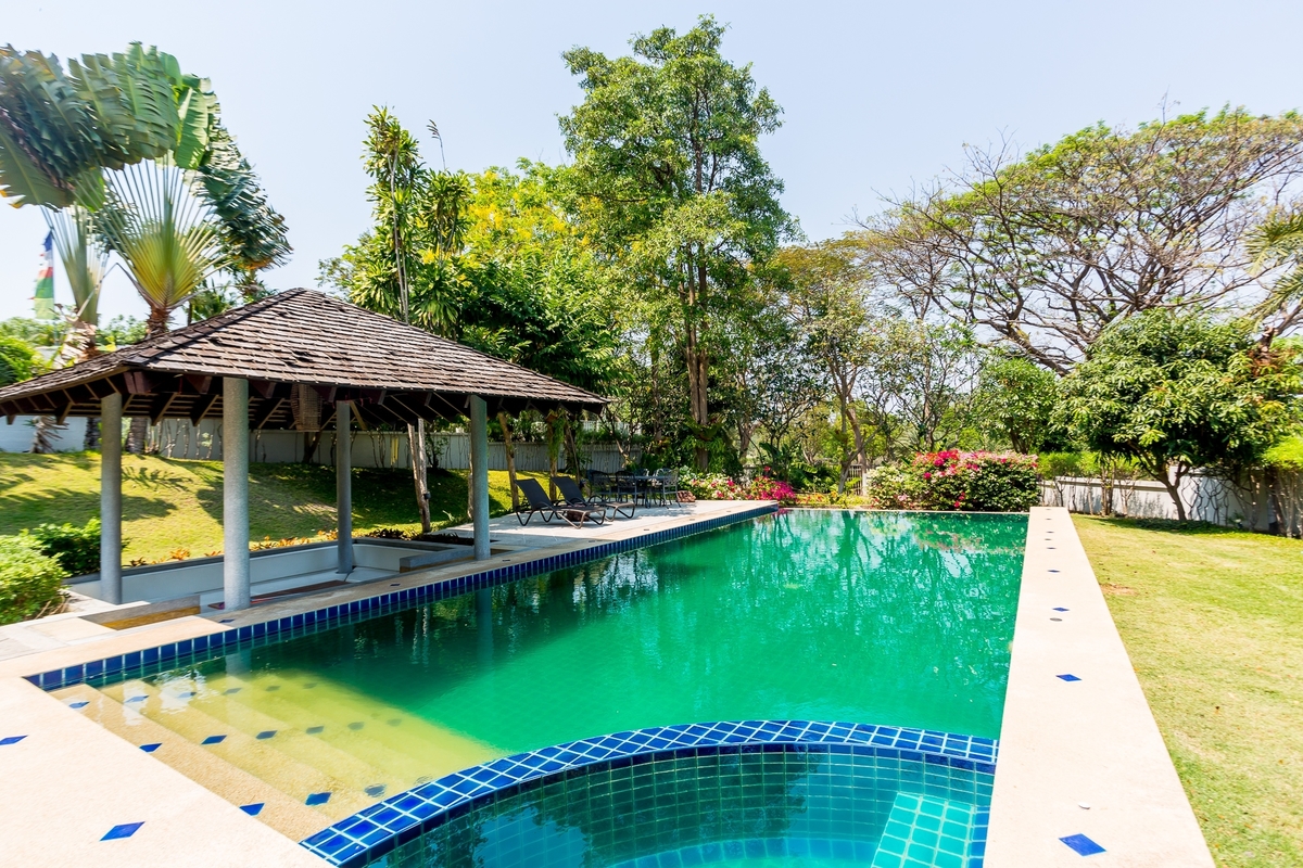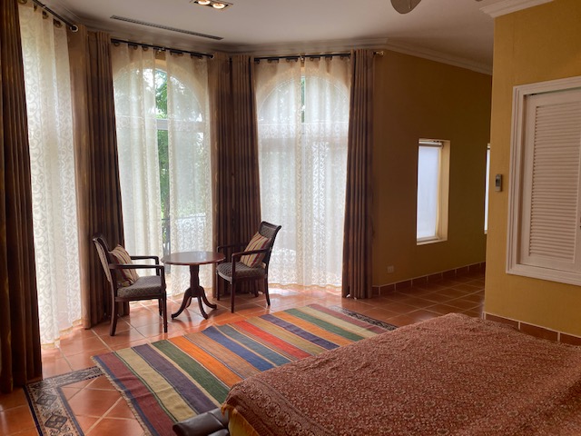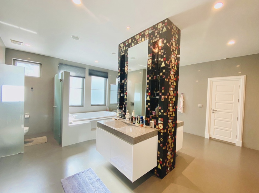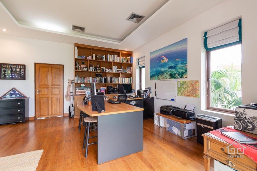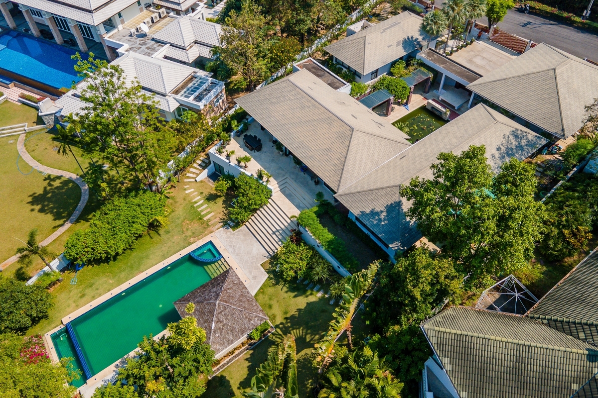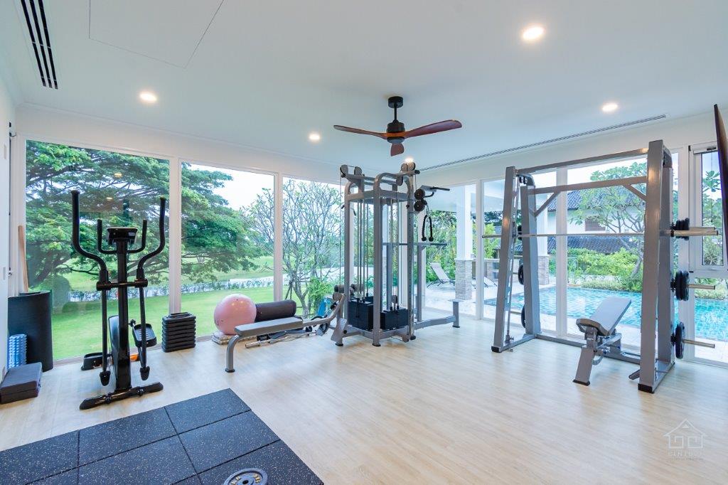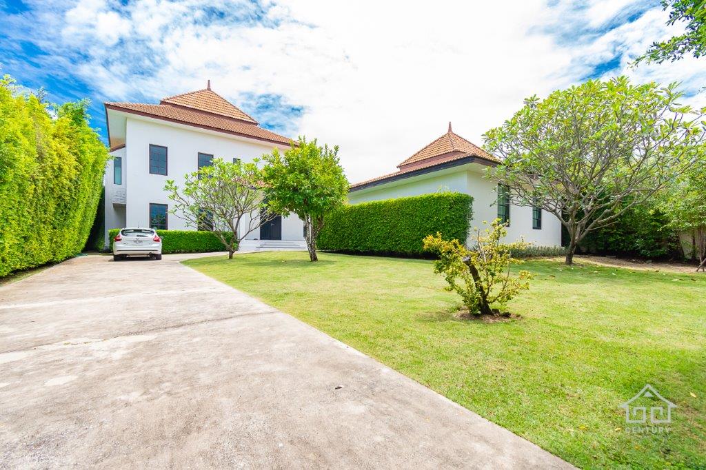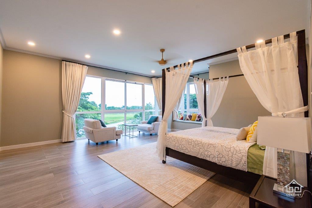 This villa consists of 3 bedrooms in the main house, a seperate 2 bed guesthouse with en-suite bathrooms and a second guest house that has a full kitchen, living room, bedroom and bathroom. There is a garden Sala for chilling where you can see golf hole 7 which is a par 5 and nice square shaped swimming pool. The main house consist of living room , kitchen and office room at the ground floor and the second floor have 3 bedrooms and 3 bathrooms with nice decoration throughout.