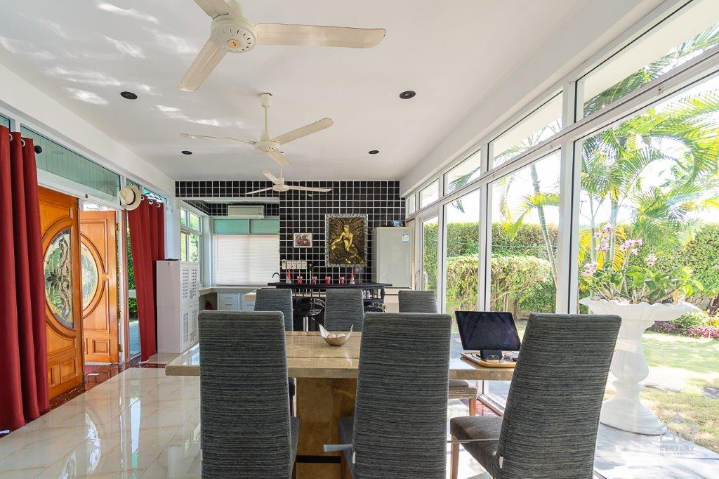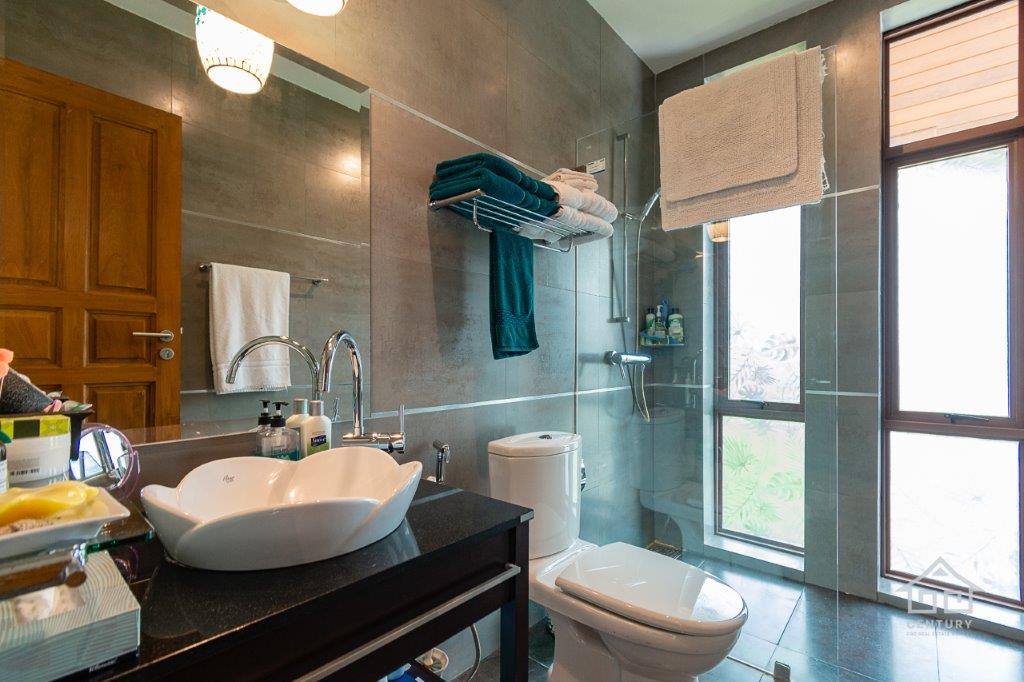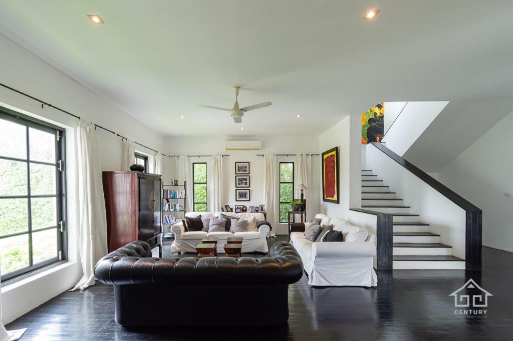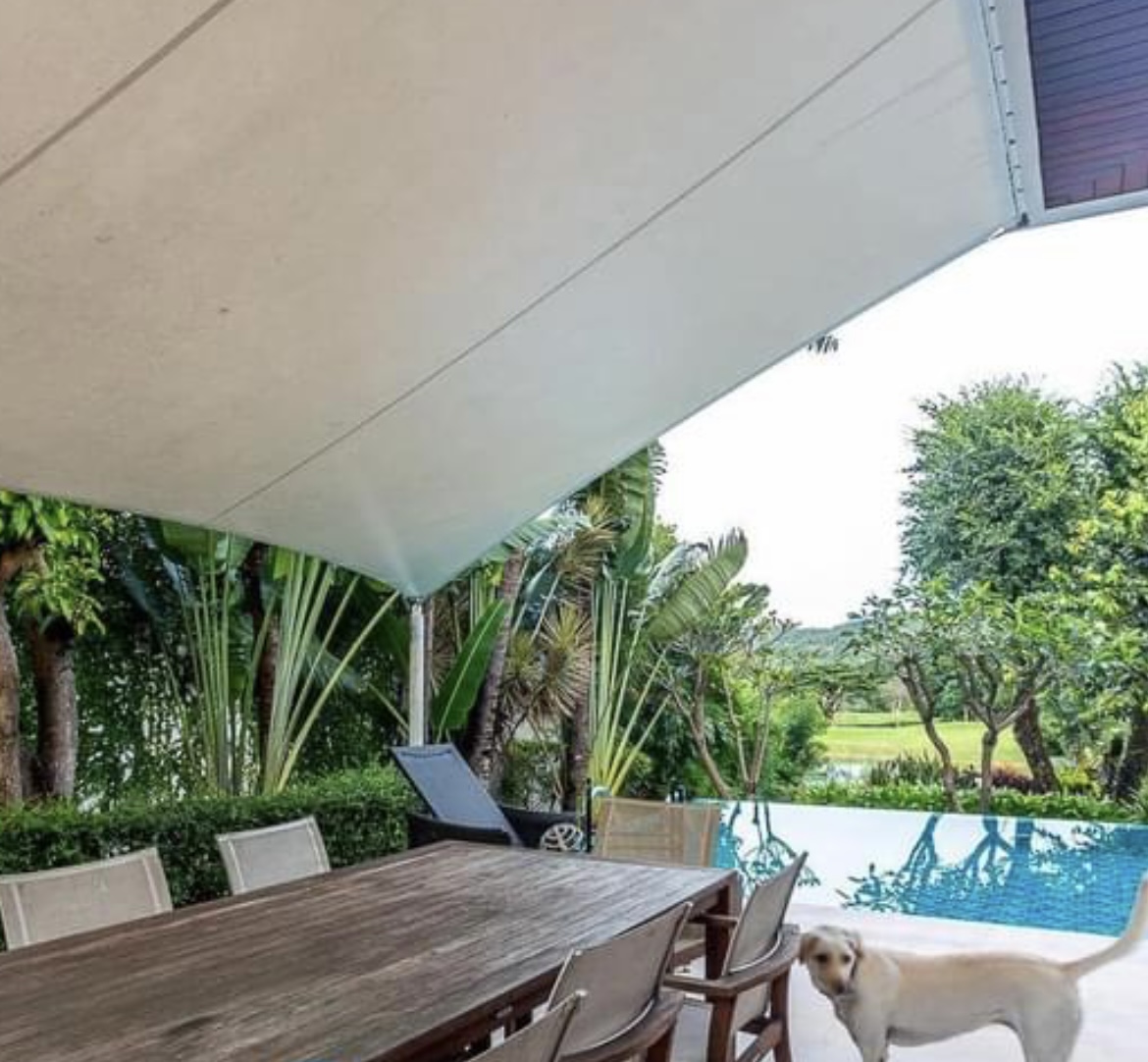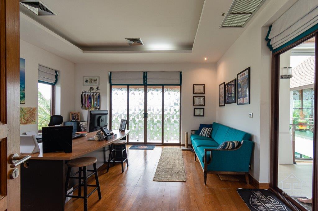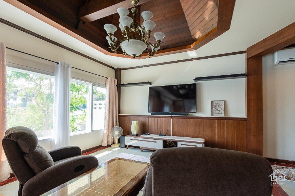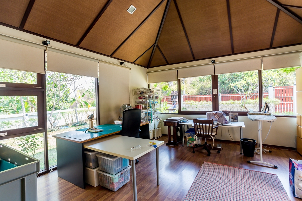 This villa consists of 3 bedrooms in the main house, a seperate 2 bed guesthouse with en-suite bathrooms and a second guest house that has a full kitchen, living room, bedroom and bathroom. There is a garden Sala for chilling where you can see golf hole 7 which is a par 5 and nice square shaped swimming pool. The main house consist of living room , kitchen and office room at the ground floor and the second floor have 3 bedrooms and 3 bathrooms with nice decoration throughout.