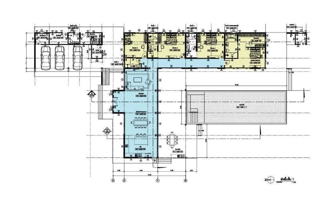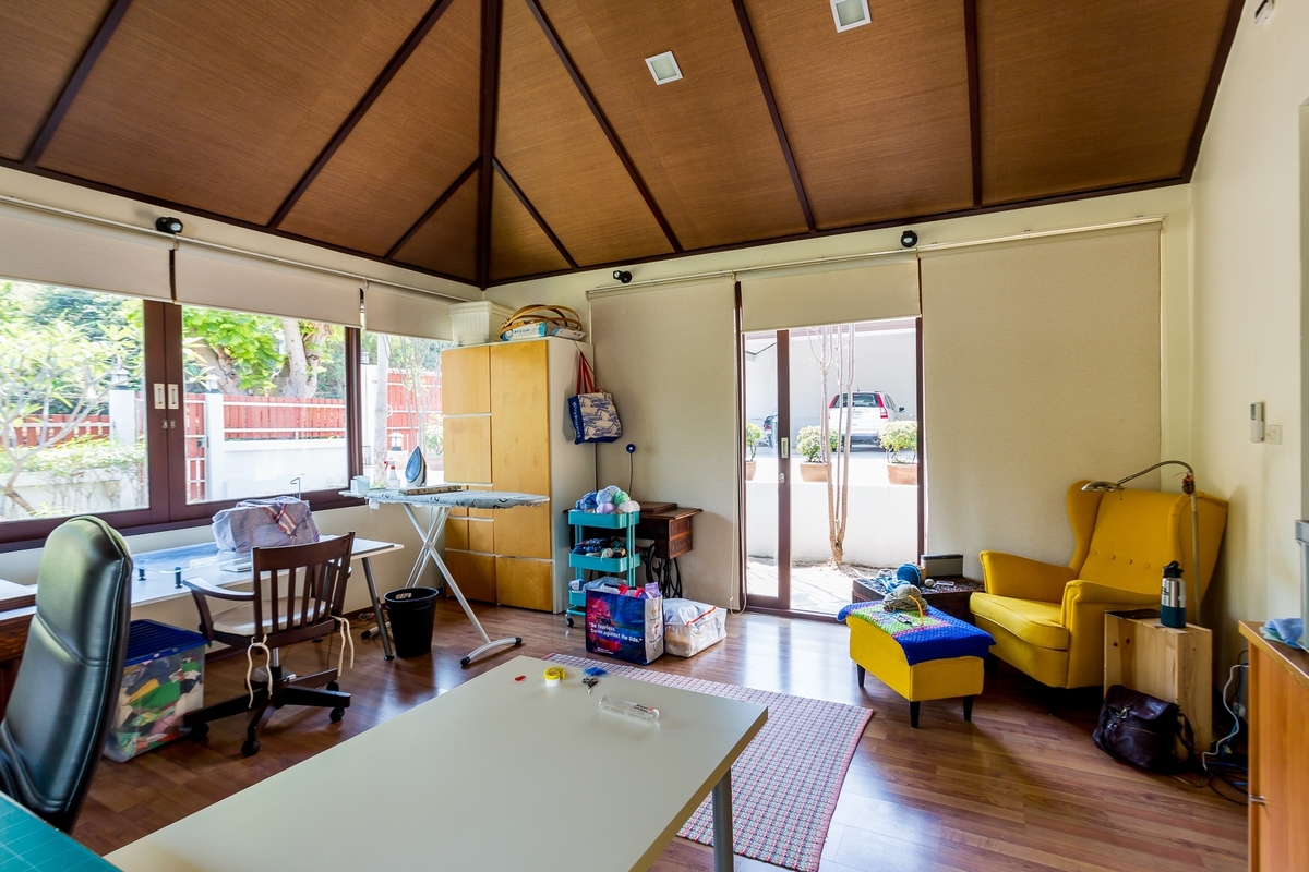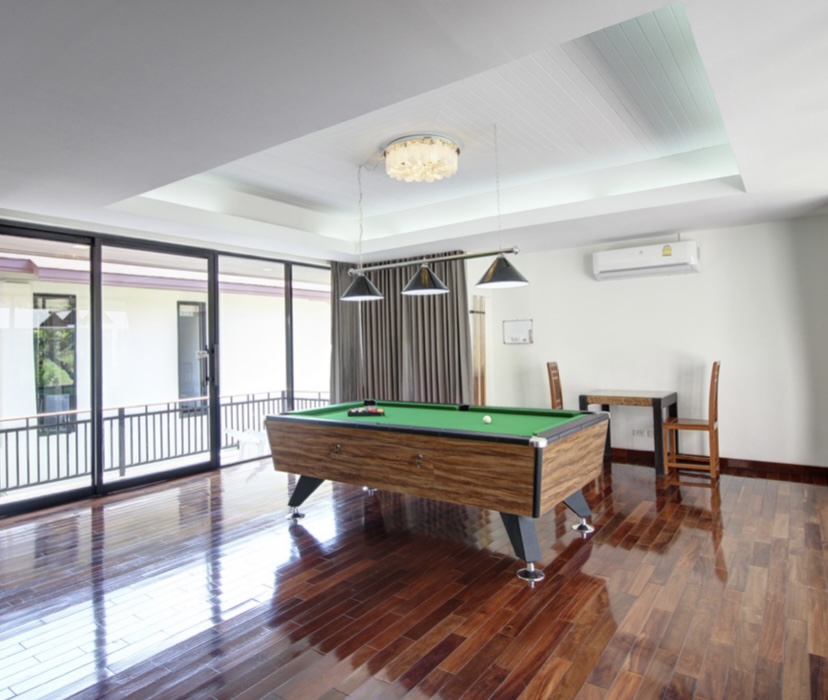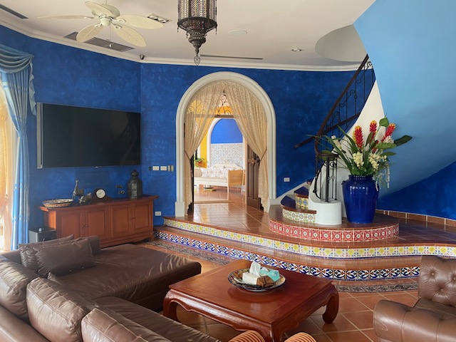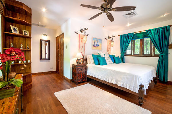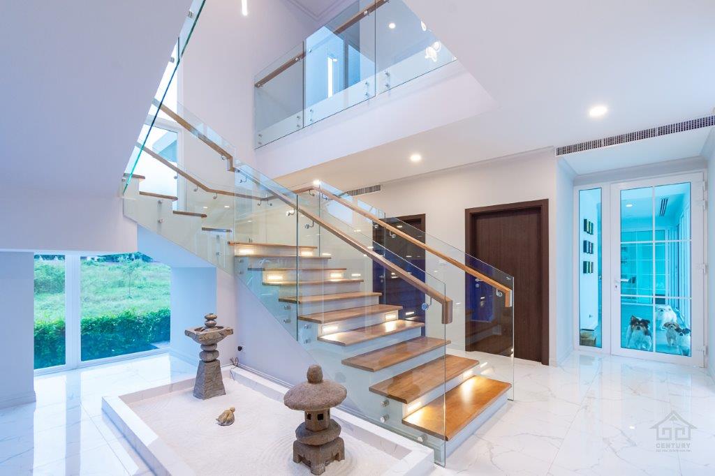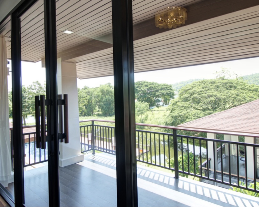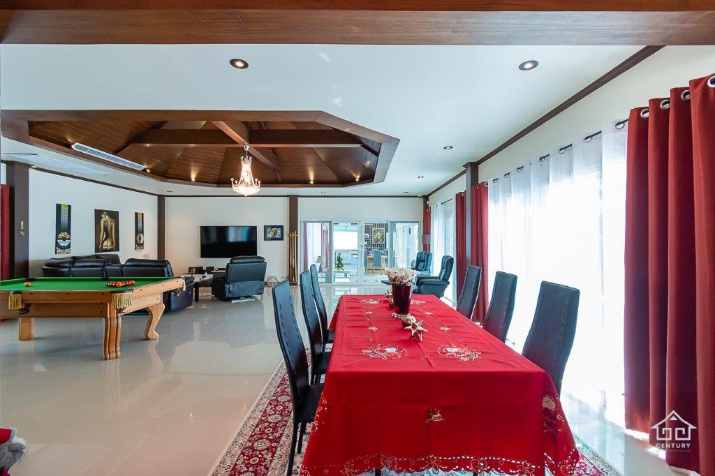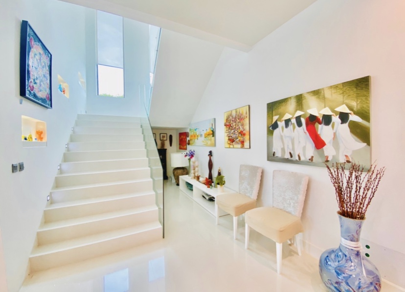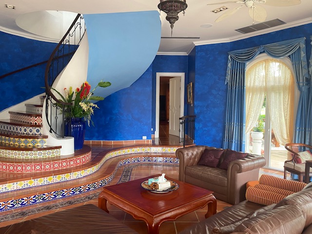 This villa consists of 3 bedrooms in the main house, a seperate 2 bed guesthouse with en-suite bathrooms and a second guest house that has a full kitchen, living room, bedroom and bathroom. There is a garden Sala for chilling where you can see golf hole 7 which is a par 5 and nice square shaped swimming pool. The main house consist of living room , kitchen and office room at the ground floor and the second floor have 3 bedrooms and 3 bathrooms with nice decoration throughout.