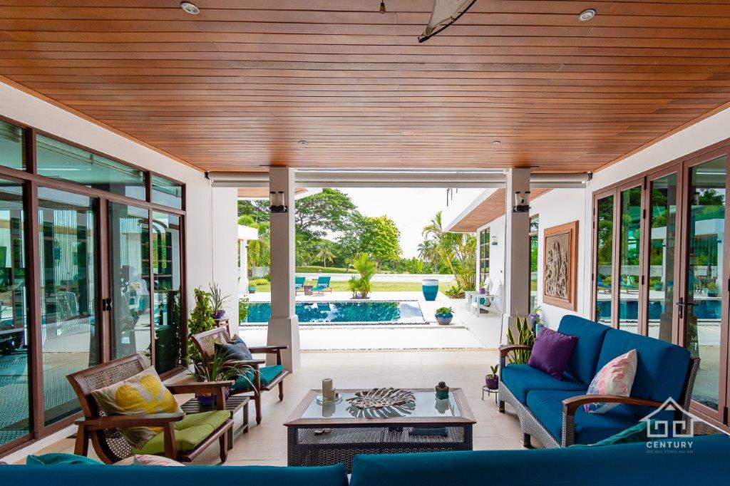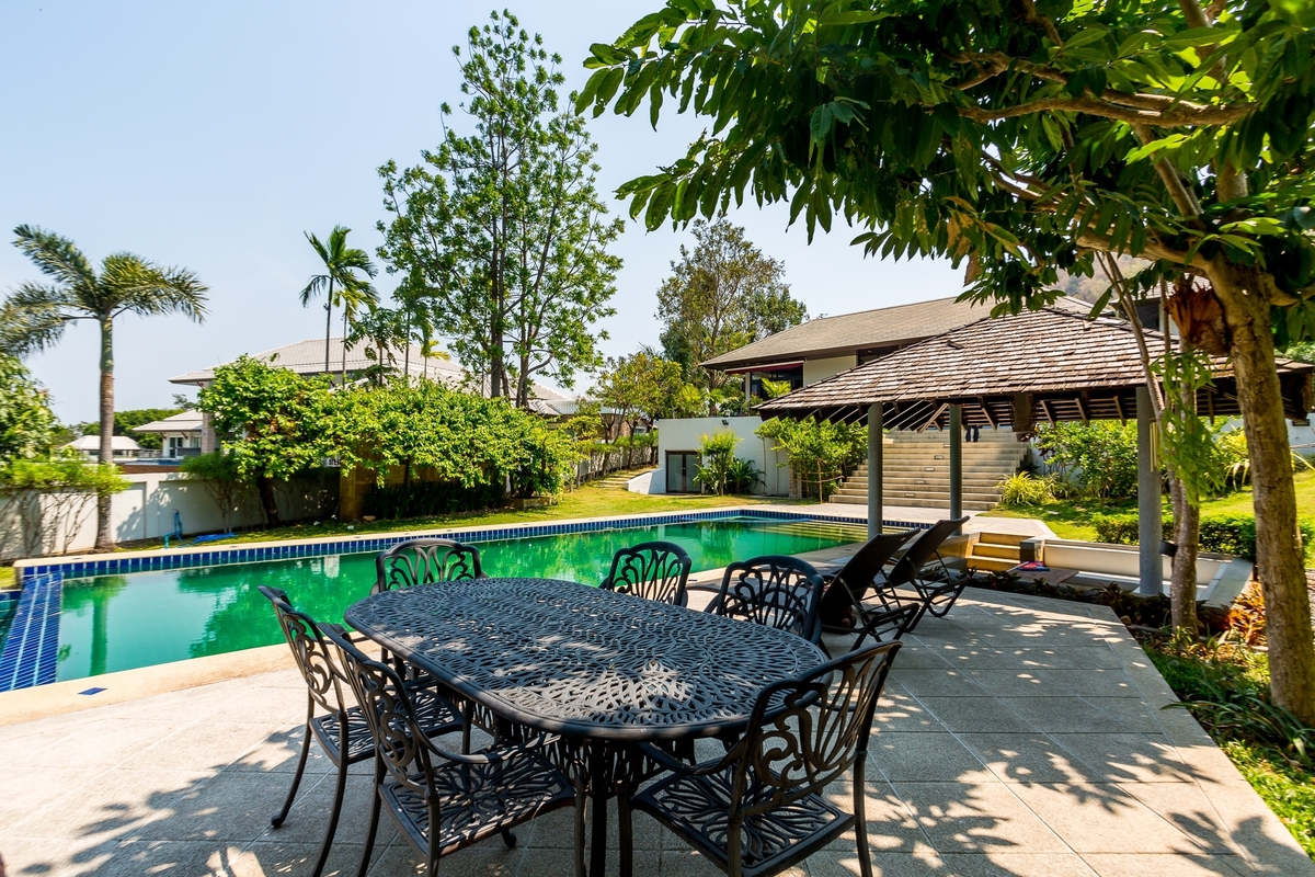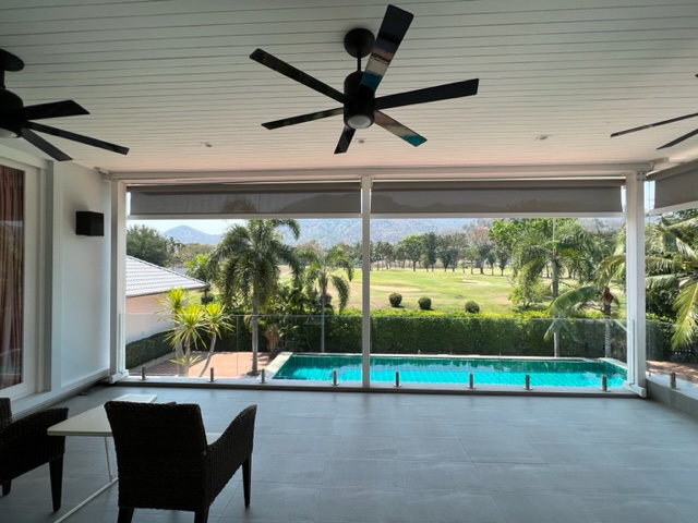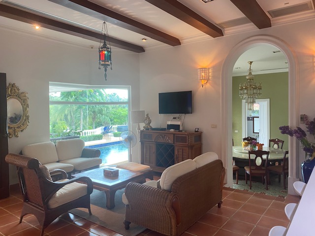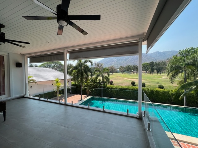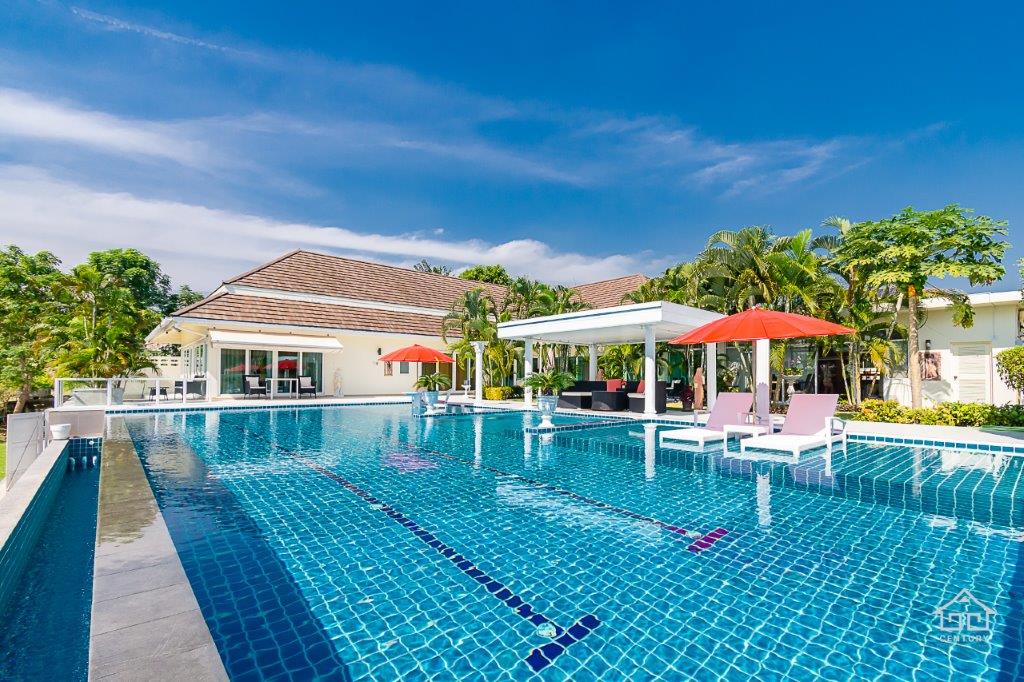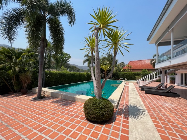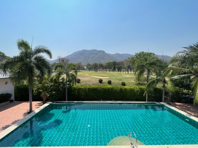 This 5 bed pool villa located within Palm Hills Golf Course, approximately 10 minutes drive North of Hua Hin Center. The villa features: