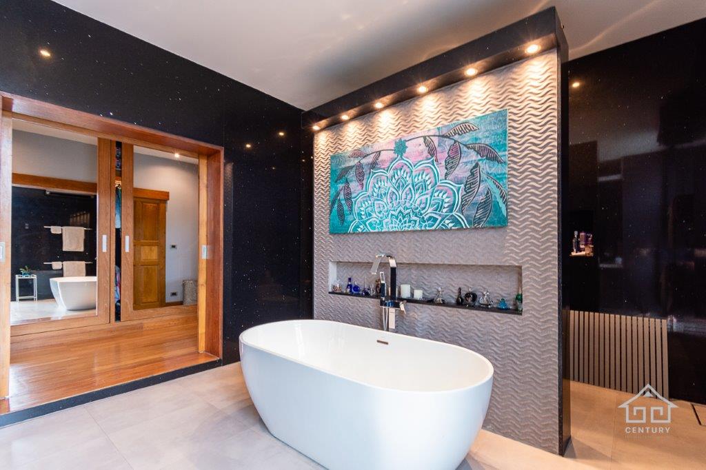 This superb quality villa has been expertly designed and constructed. The Property features an open plan living area with snooker area and a separate dining sala all in the nature of Bali designed for inside - outside living along with a fully equipped modern kitchen. The Property also features 6 bedrooms, all with en-suite bathrooms, a gym and steam room, double car port, tropical gardens that include a pool, terraces and decking and designated dining and play areas for children. The Property is a one of a kind with the Owners meticulously over-seeing all aspects of the construction and final finishing to exacting high standards giving a Villa that has amazing functionality for our climate. -