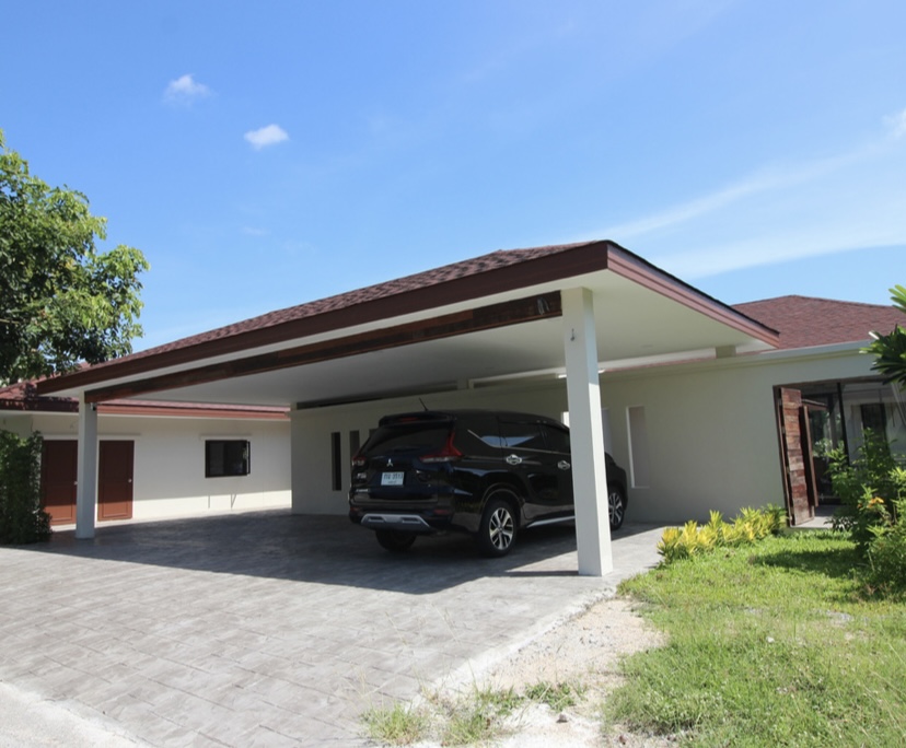 -Large, covered car port for 3 cars and additional parking for another 3 cars