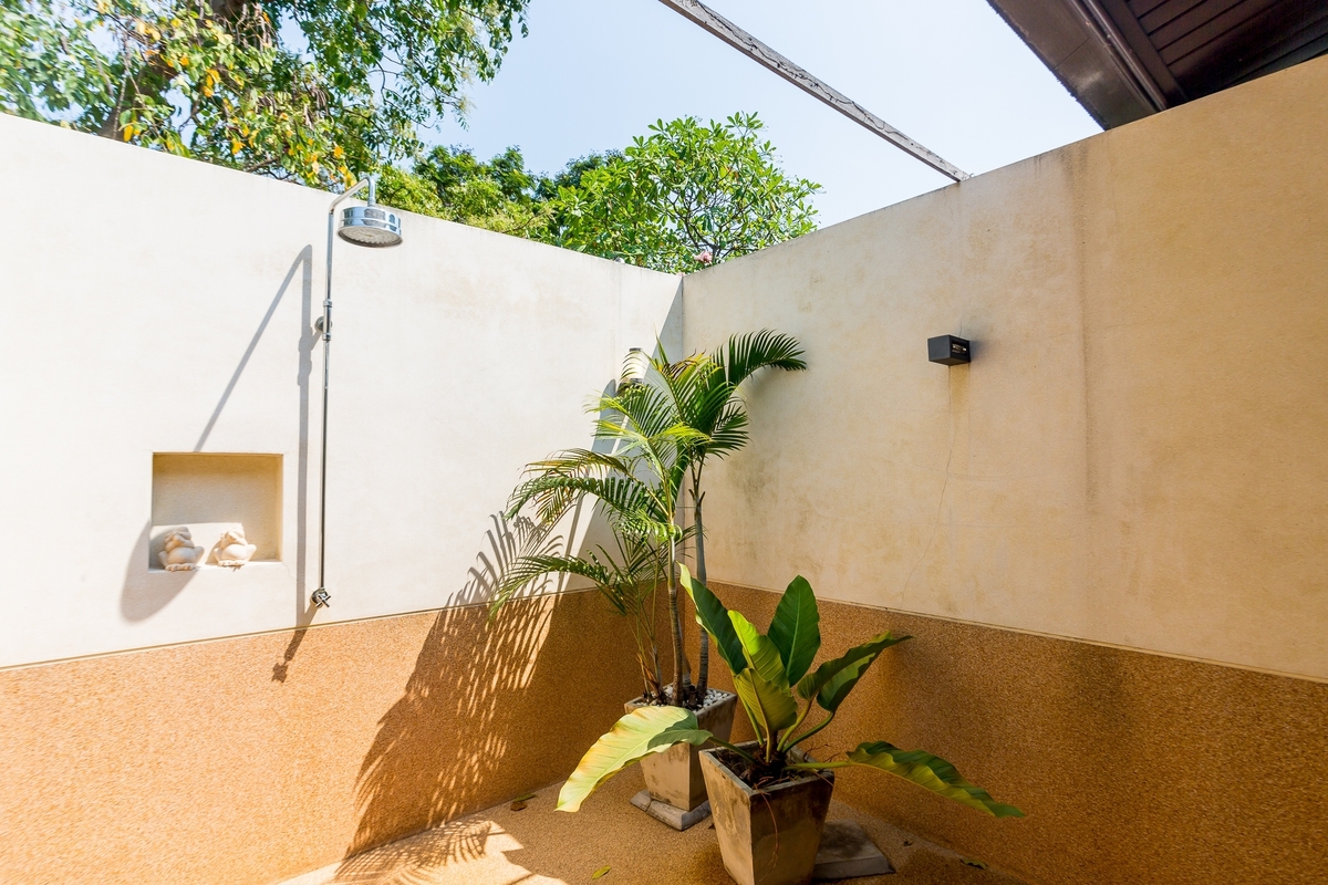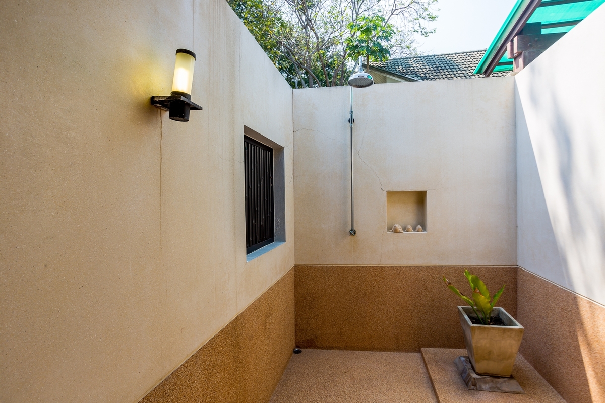 Energy-efficient design elements start with 20 cm thermal blocks and double-glazed doors and windows. The green energy solar system taps into Hua Hin’s abundance of sun, giving you automatic energy cost savings. Coupled with the solar are the DC inverter AC units saving up to 40% less power than conventional air conditioning systems.