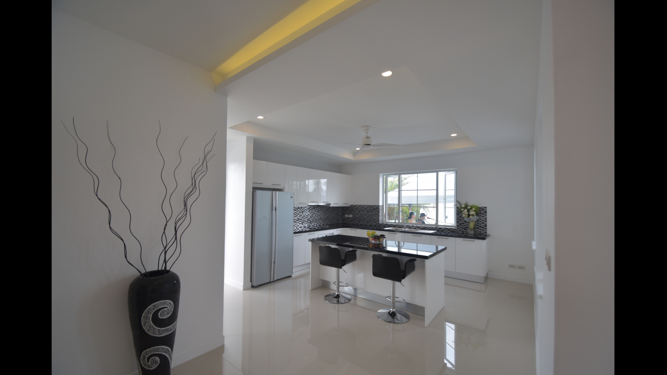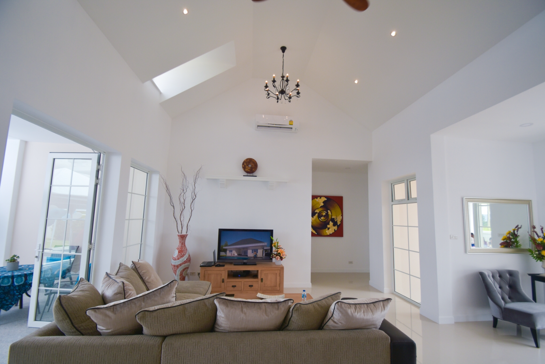 The villas offer superb mountain views and have been designed to give maximum light and space. The villas are a H-shaped design and feature a reception hall, 5M high vaulted ceilings, European kitchen with island, car port with covered walkway, CCTV, underground electrics, landscaped gardens, inverter air-conditioning units and LED lighting throughout. There is also wonderful overflow pool and outside terrace perfect for enjoying the views and mountain breeze.