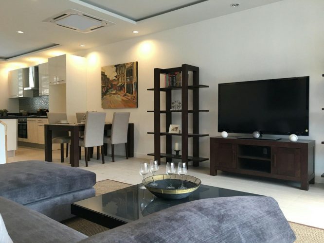 A fully managed resort in the heart of Hua Hin, within 5 kilometers from the beach, golf club, schools, hospital and restaurants.DOWNSTAIRS: 100 sq.m. total living area– Open plan living, dining and fully fitted kitchen