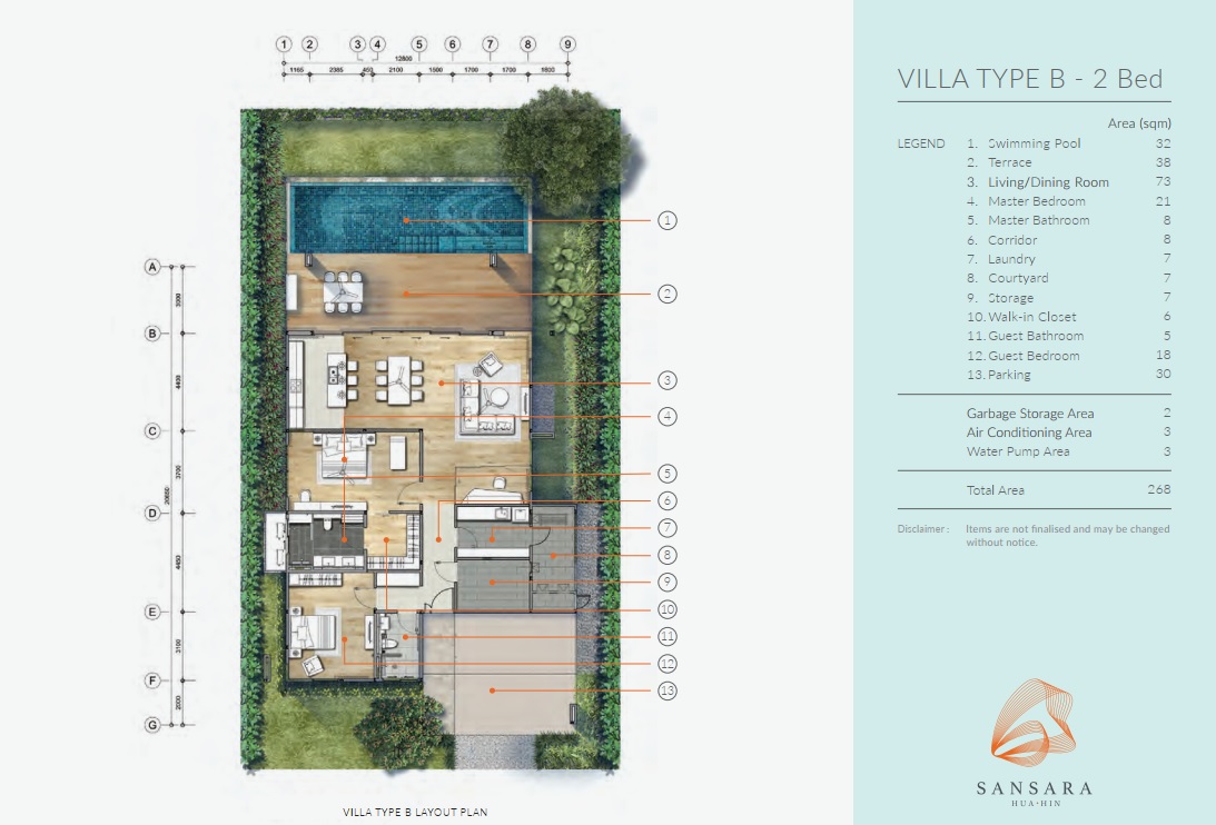 Villa 6: 268 sqm Living area, 572 sqm Land Plot **22,388,000 THB**