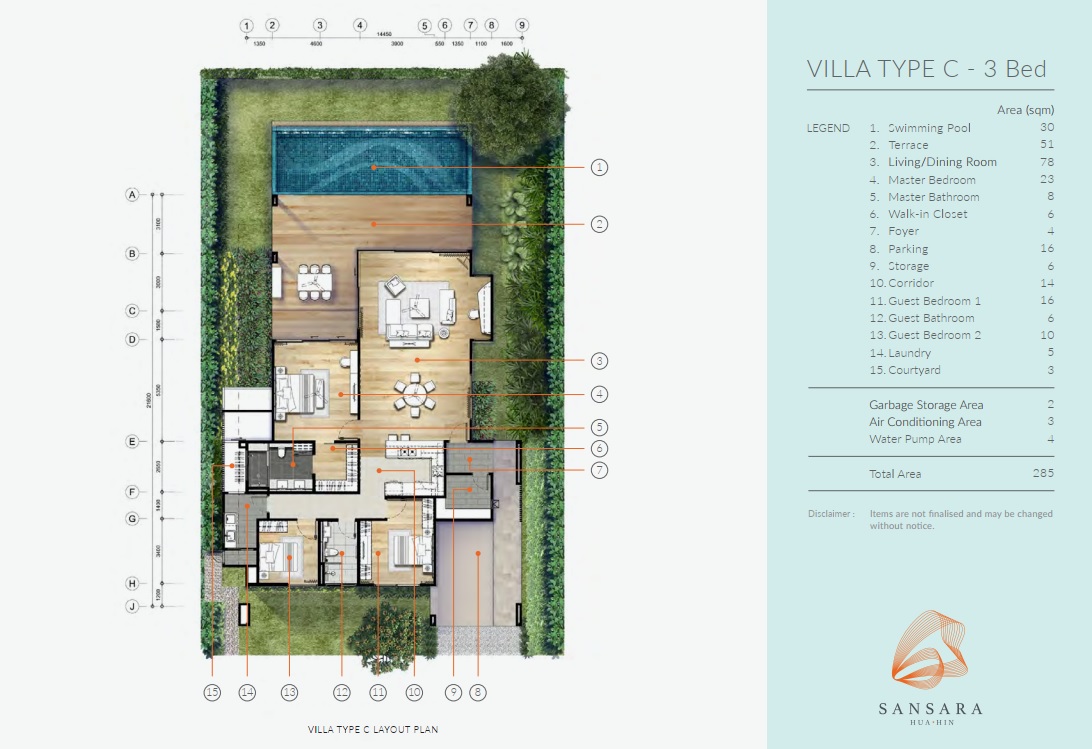 Villa 9: 277 sqm Living area, 551 sqm Land Plot **24,364,000 THB**