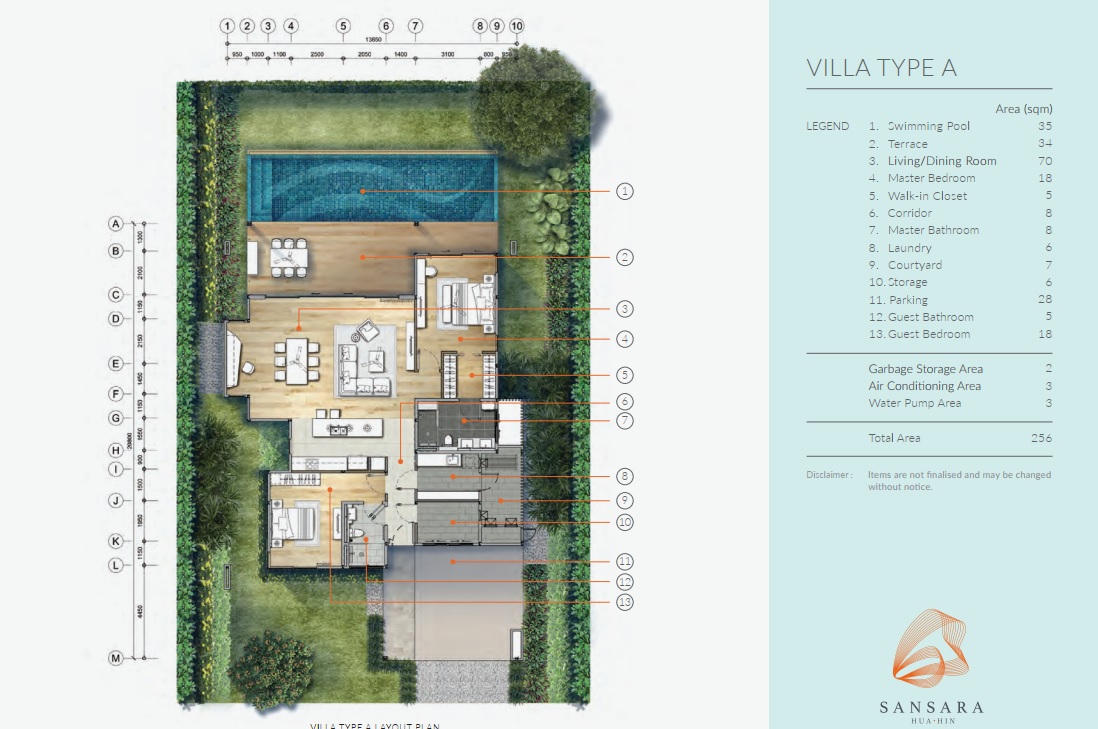 Villa 8: 256 sqm Living area, 560 sqm Land Plot **22,720,000 THB**