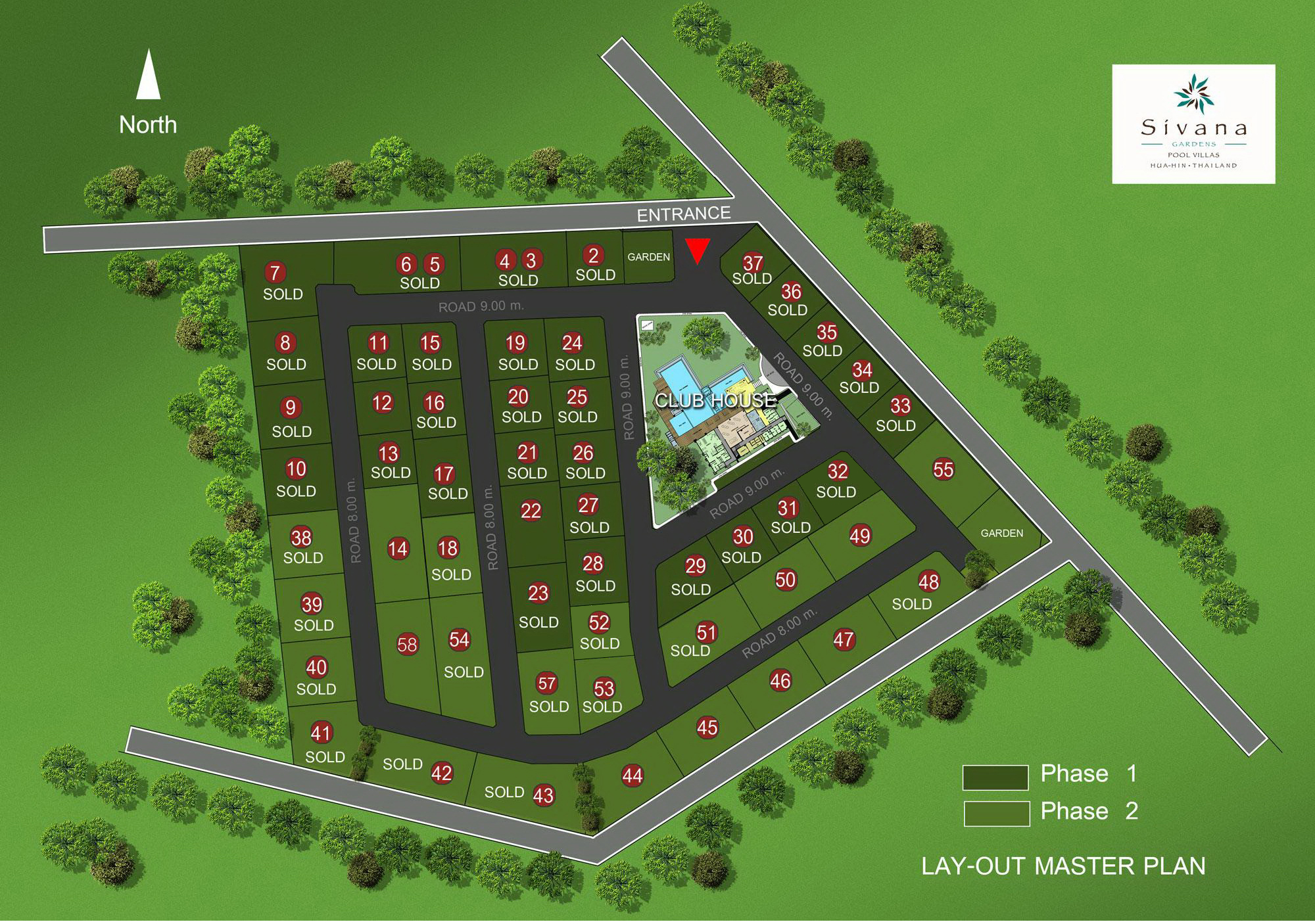 Sivana Gardens - Modern, Tropical pool villas in the South of Hua Hin, set on 18 Rai of elevated mountain side land to the South of Hua Hin and just only 5 minutes to the glorious beaches of Khao Tao.