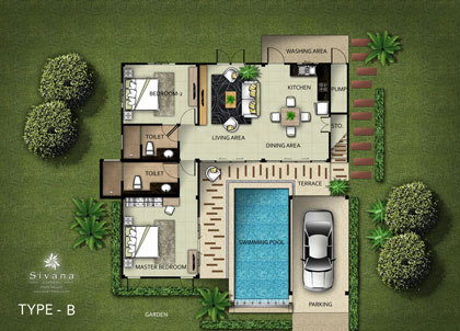 Sivana Gardens has 2 phases. Phase I with 30 quality homes and Phase II with 20, which will be centered around a Clubhouse with full facilities. There are 7 different styles of villas to choose from, all designed in the same, modern chic style with roof top sun terraces and pools but with different layouts depending on the individuals tastes and requirements.