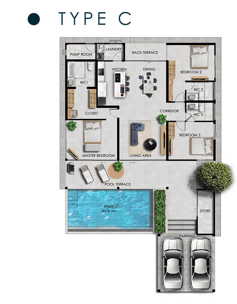 TYPE C 3 Bed / 3 Bath LAND from 508sqm TOTAL HOUSE 319.50sqm From 13.5MTHB