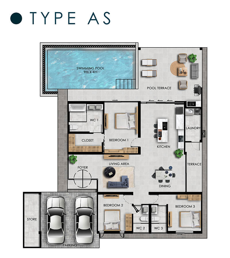 TYPE AS 3 Bed / 3 Bath LAND from 508sqm TOTAL HOUSE 284.00sqm From 12.6MTHB