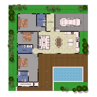 Villa Type B is the larger 3 bedroom Villa, built using the finest materials and the highest workmanship with top quality finishings.
