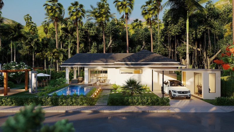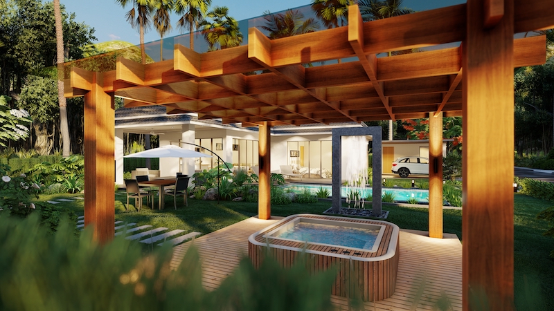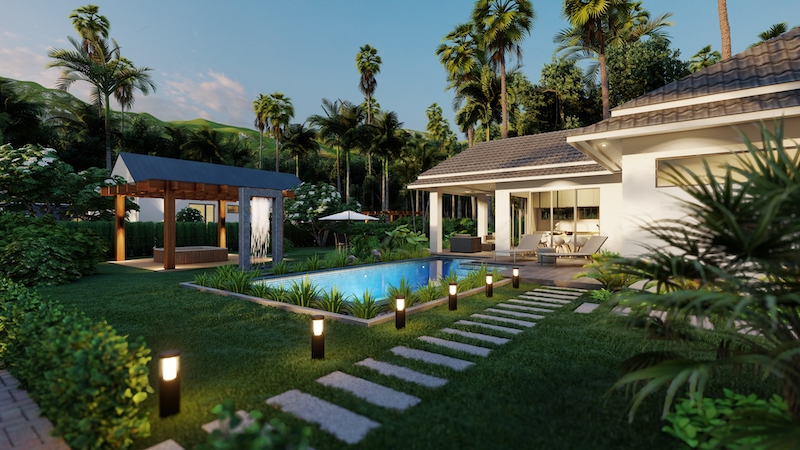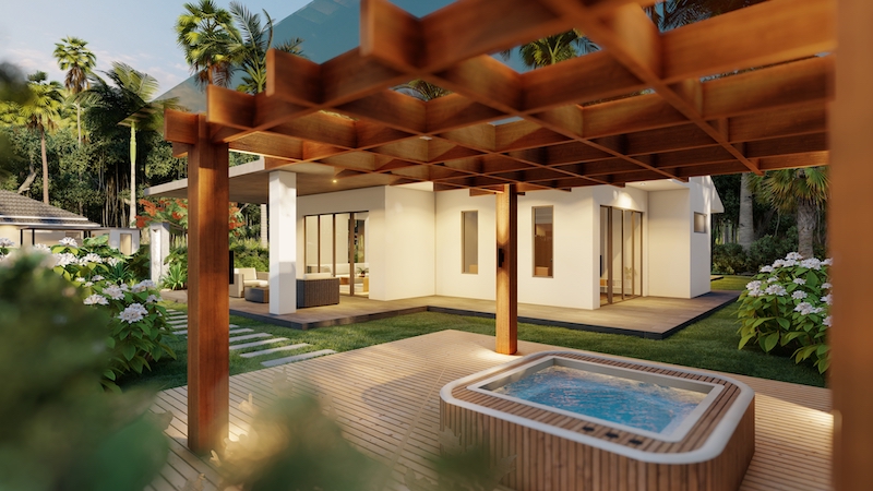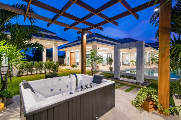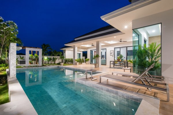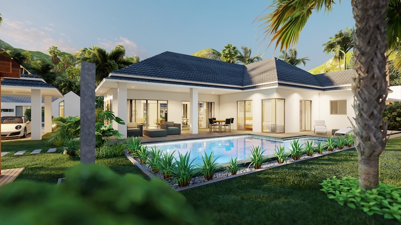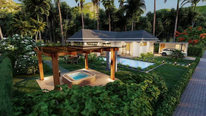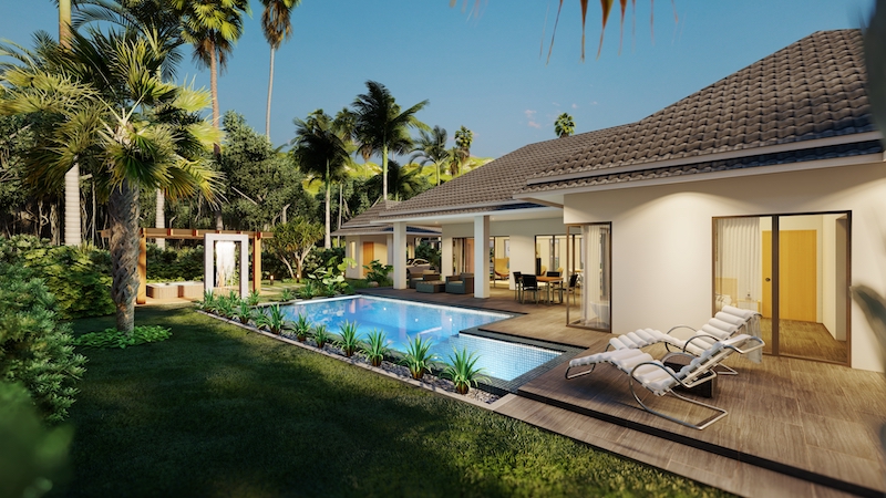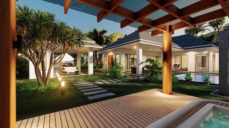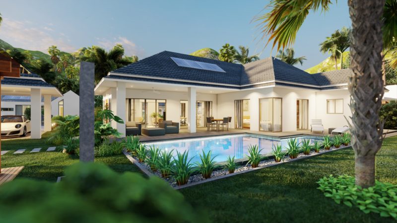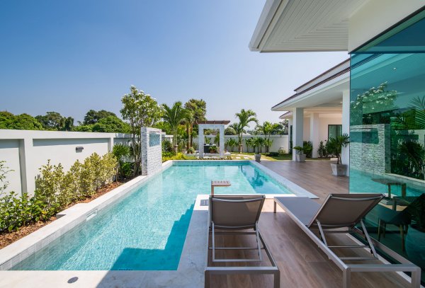 hua hin villa Teak includes an impressive 8 x 4-meter saltwater swimming pool & build in powerful solar cells on the roof.